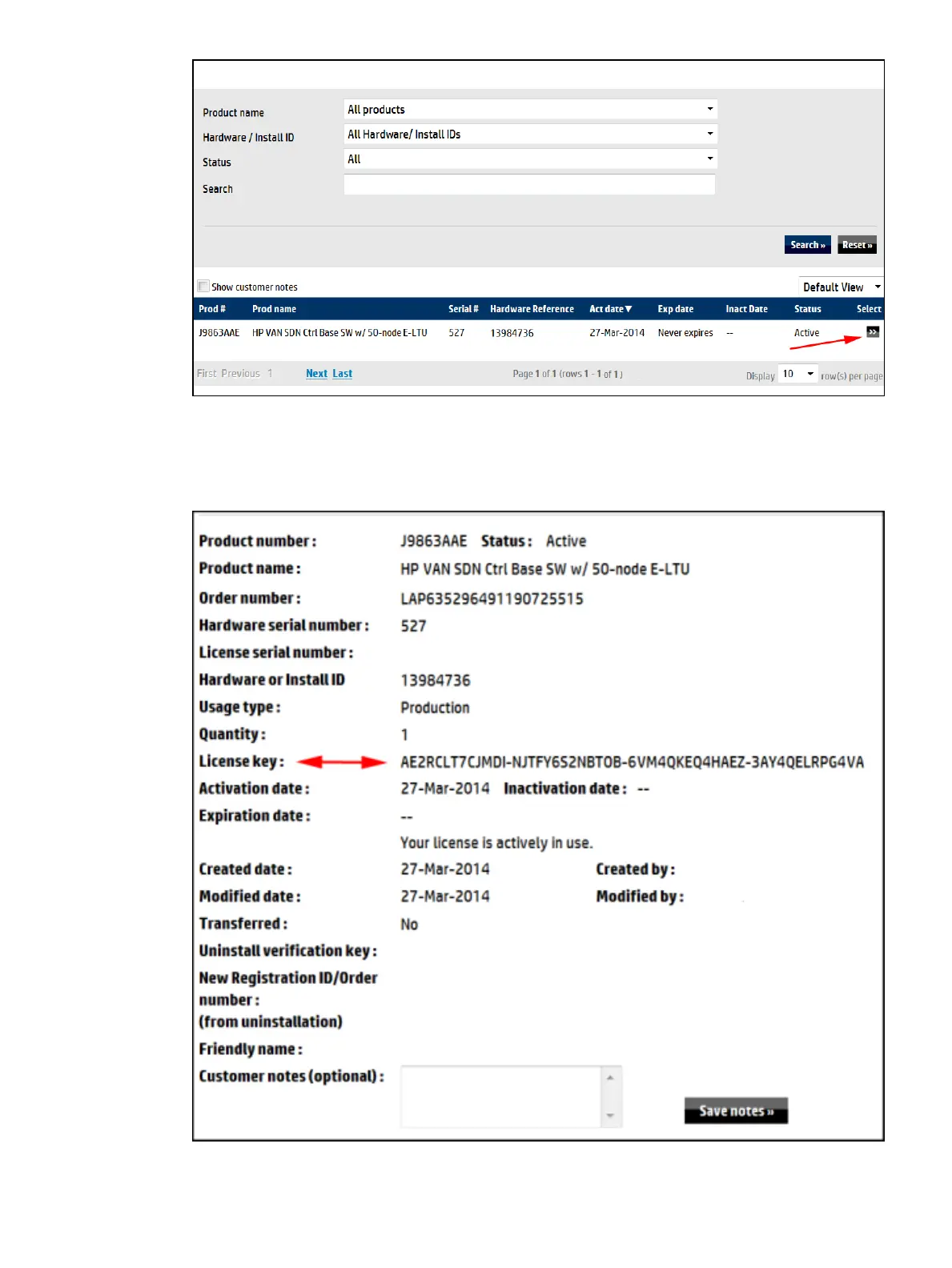 4. To view the information for the license you just loaded, click the Select button for that license.