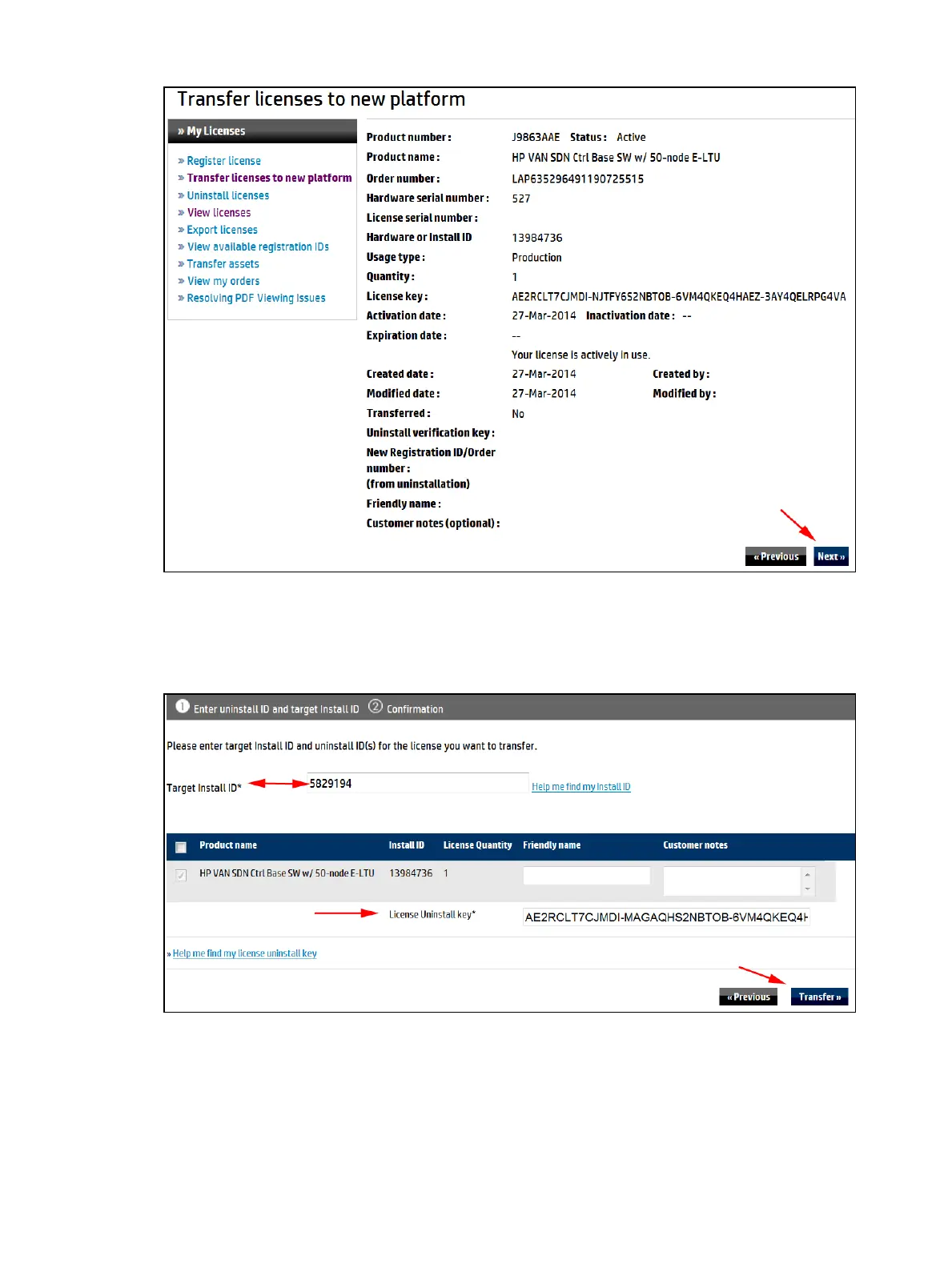 5. Verify that this is the license you want to transfer, and then click Next.