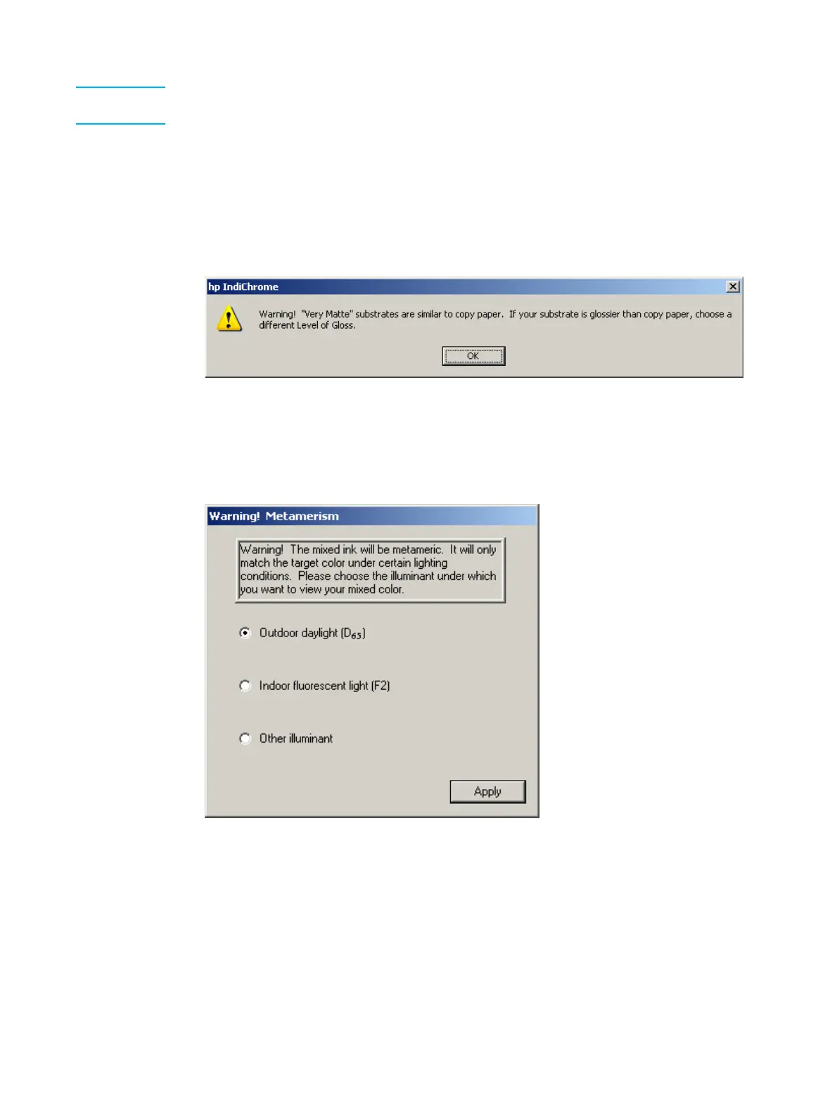 5 Click Apply. If Uncoated was selected, the following message is displayed: