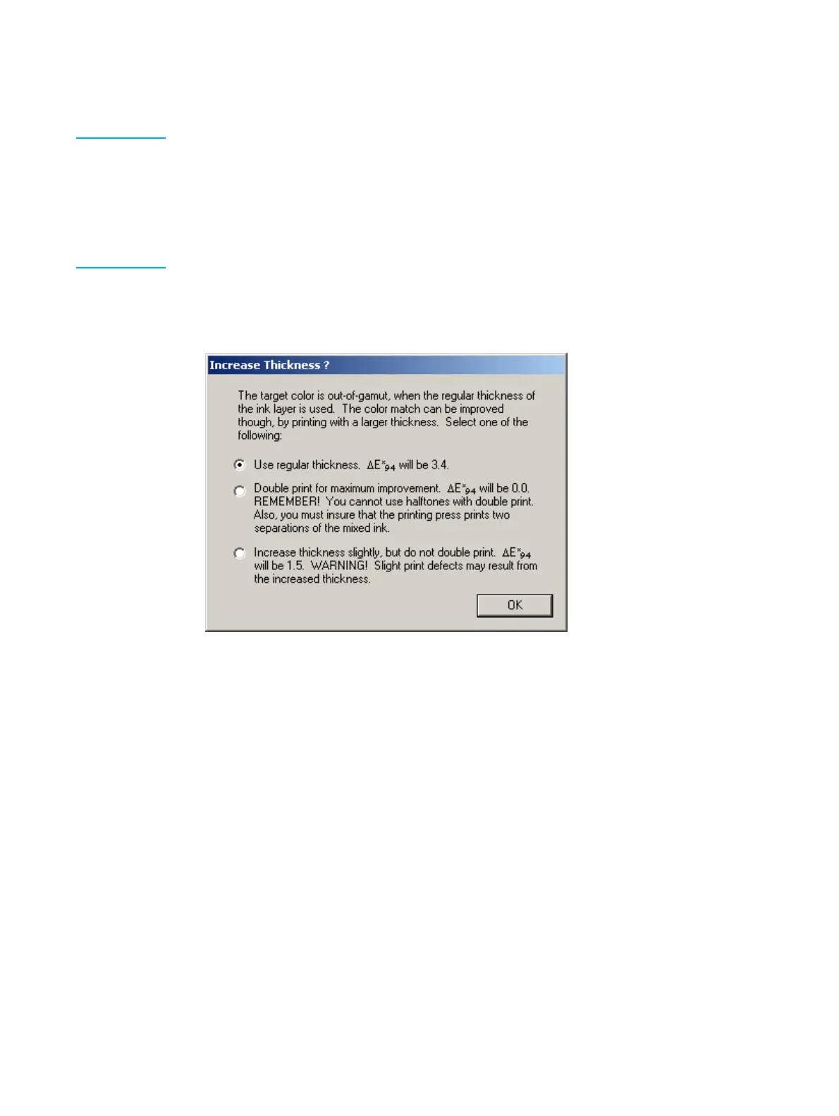 Thickness window appears. You can improve the color match by printing with a