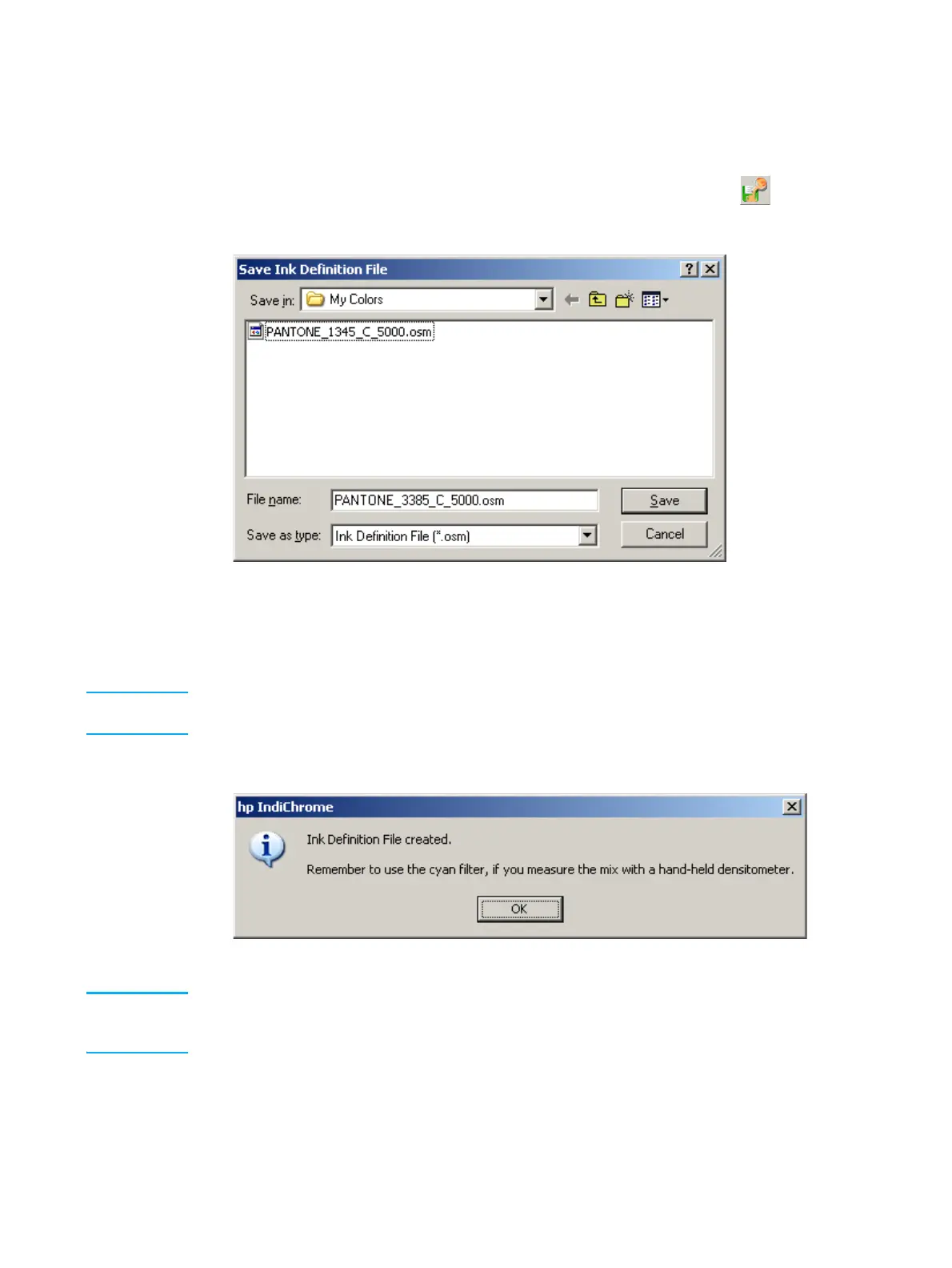 The Save Ink Definitions File window provides a file name for the ink definition file.
