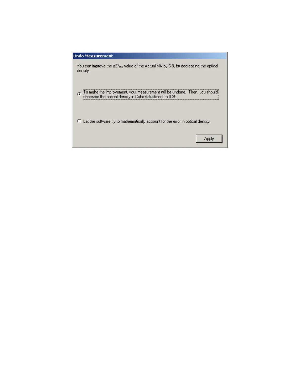 optical density spec value for the ink to the value given in the Undo Measurement