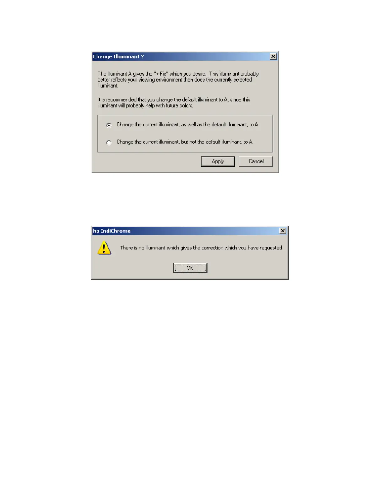 If a more appropriate illuminant is found the Change Illuminant window opens.