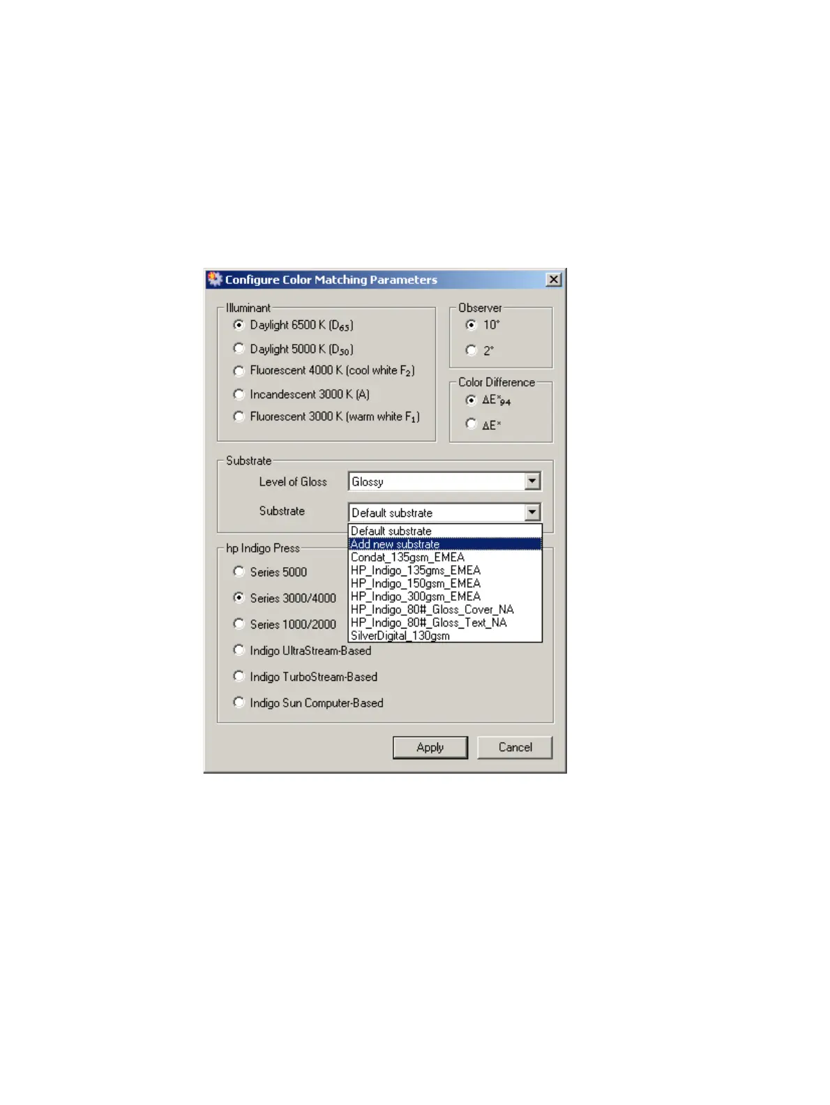 When selecting the substrate in the Configure Color Matching Parameters window (see