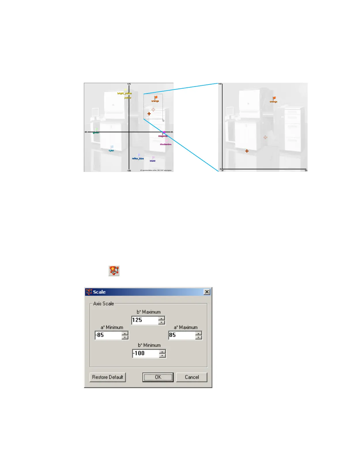 To change the scale used in the 2D color space panel (and therefore change the portion