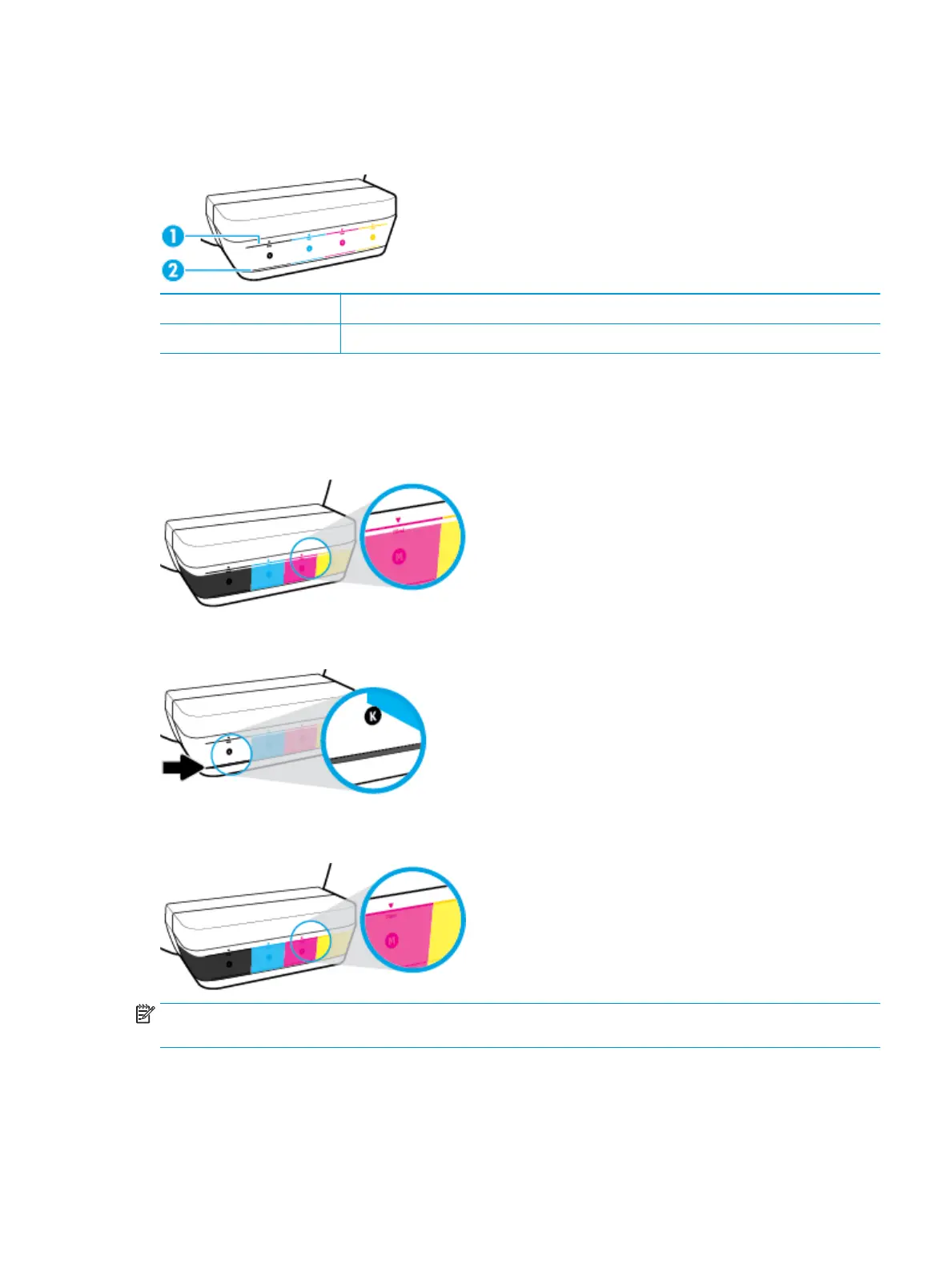 NOTE: Product service or repairs required as a result of lling the ink tanks improperly and/or using non-HP