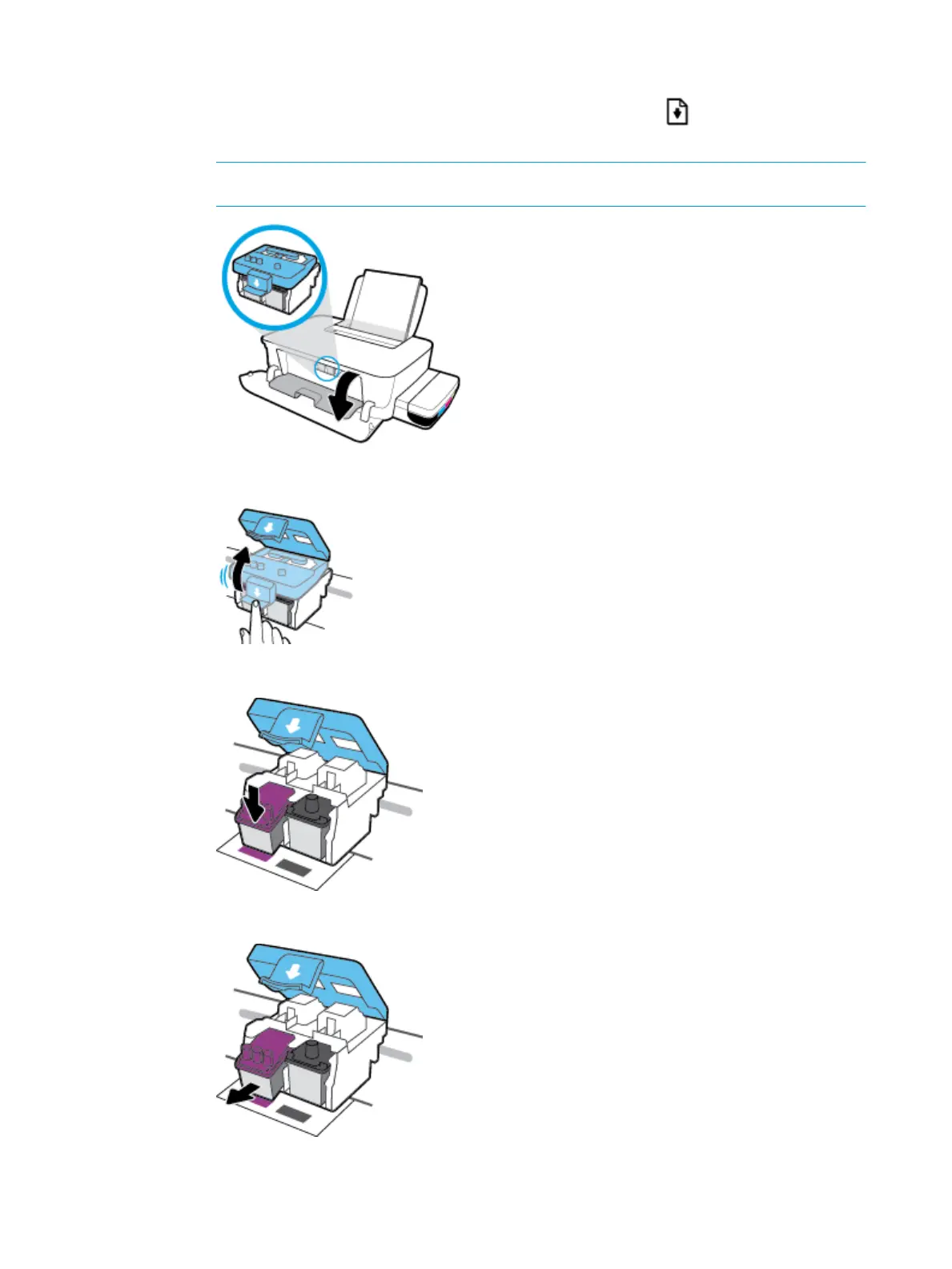 b. Open the printhead access door. Press and hold the Resume button ( ) for about three seconds.