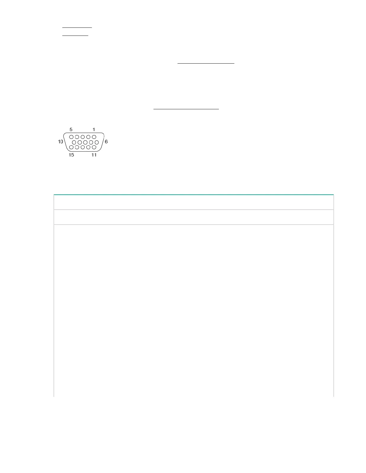 Table 9: VGA port pin functions
