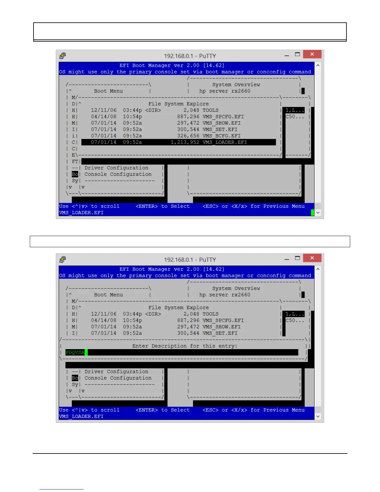 11. Navigate to the line that reads VMS_LOADER.EFI and press <Enter>.