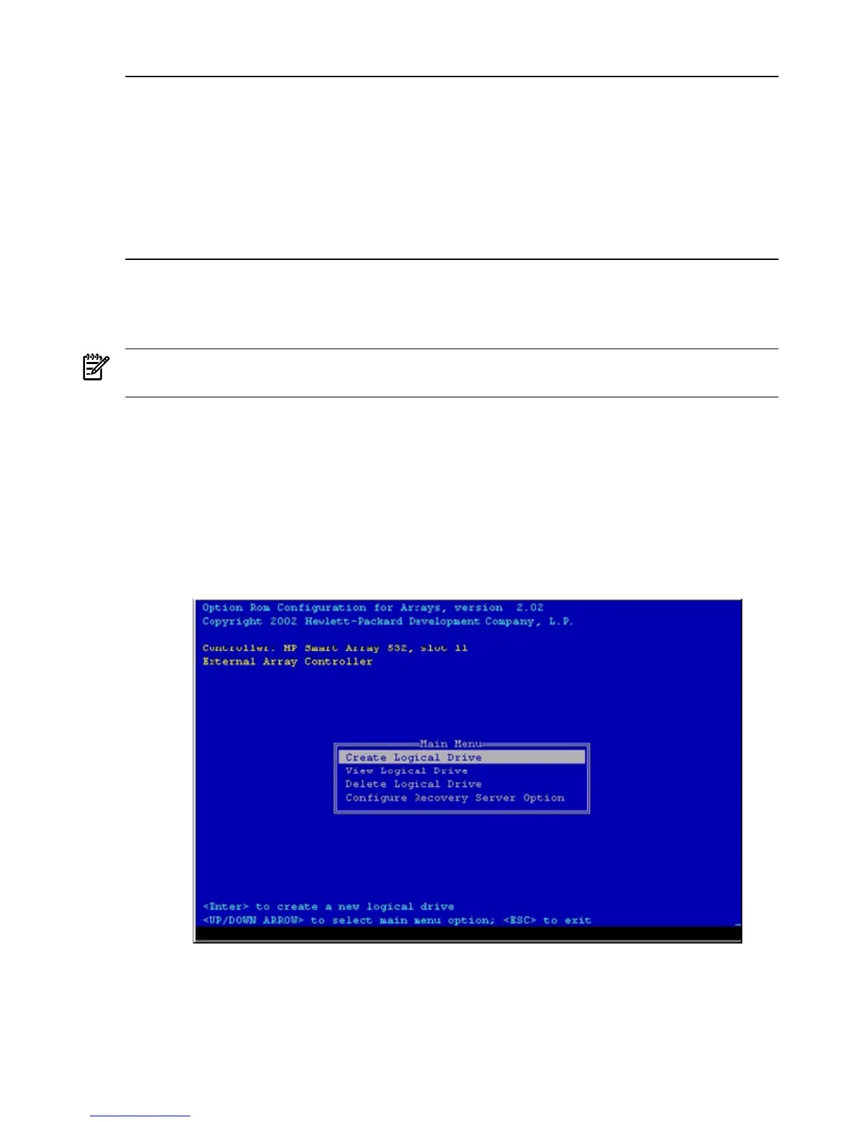 1. Power on the server. POST runs, and any array controllers that are in the server are initialized