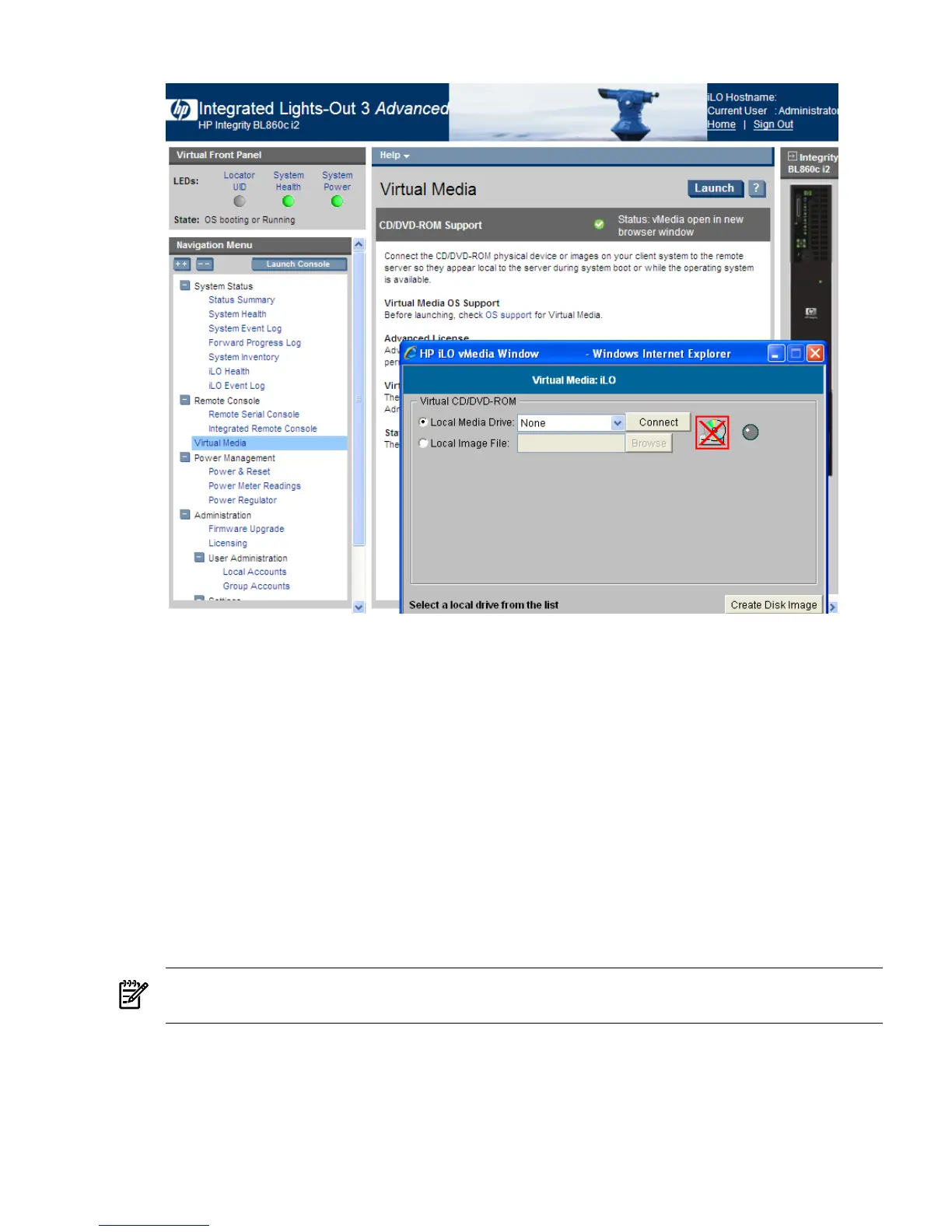 Figure 2-2 Configuring virtual media using the iLO 3 interface