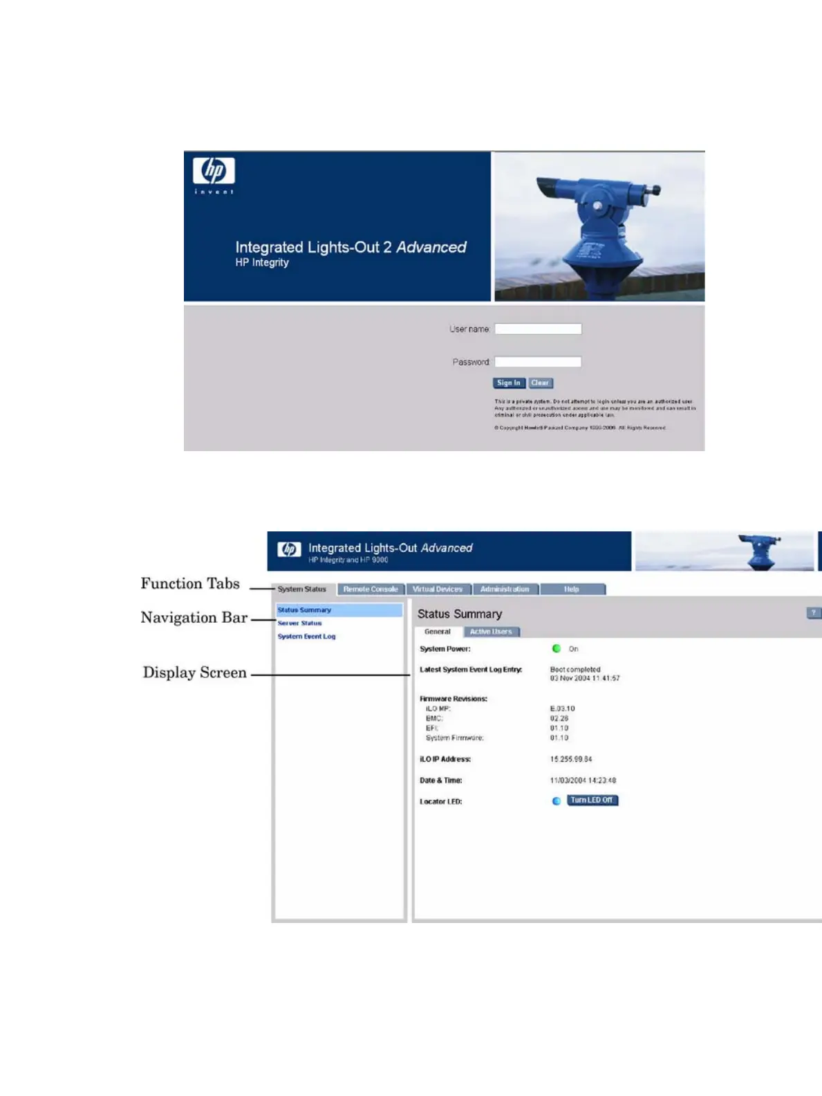 1. Open a web browser and enter the host name or the IP address for the iLO 2 MP.
