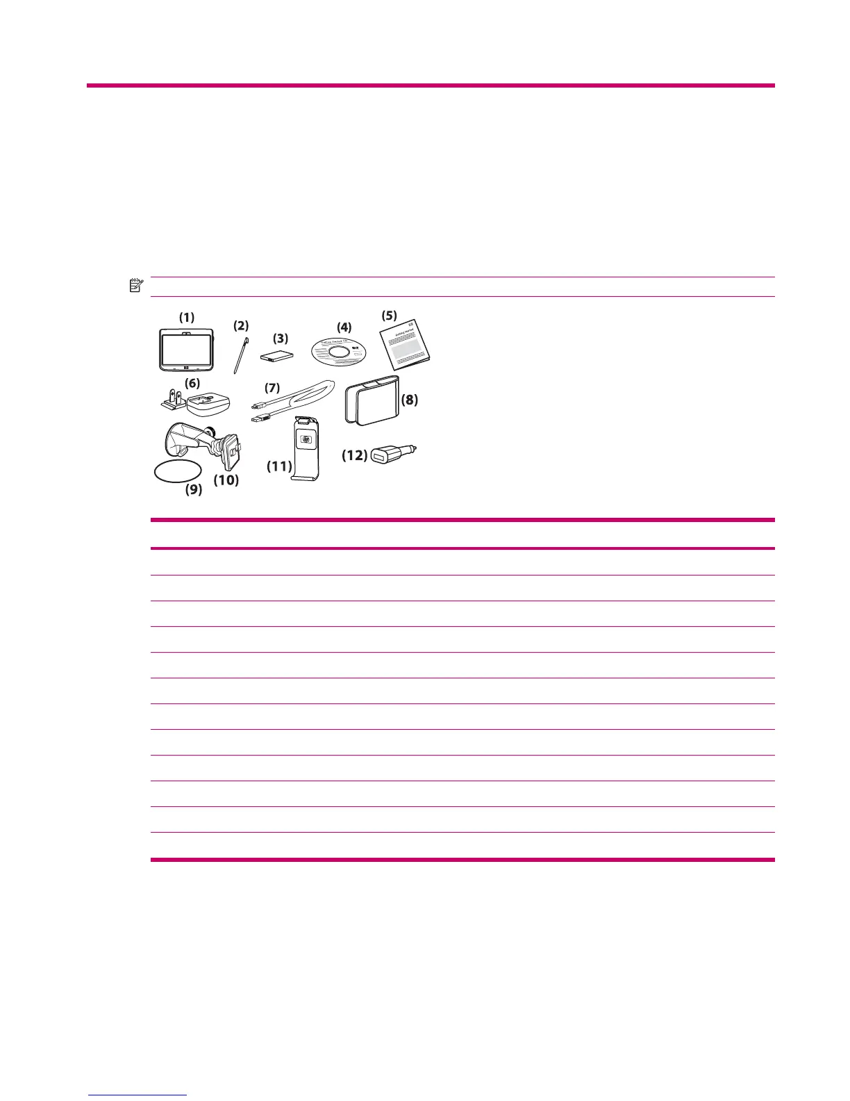 This illustration depicts the items that come in the box with the Travel Companion. Use this illustration