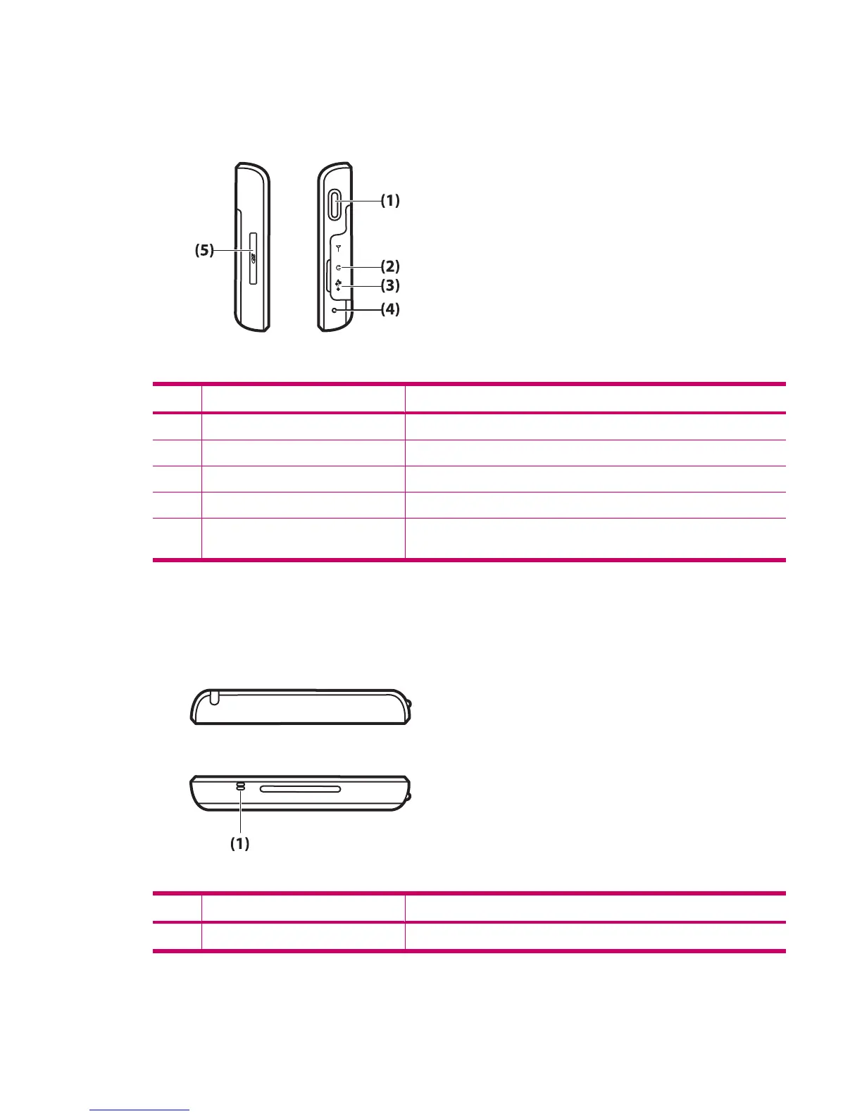 (3) Charging/Communications Port Use to connect the mini-USB cable.