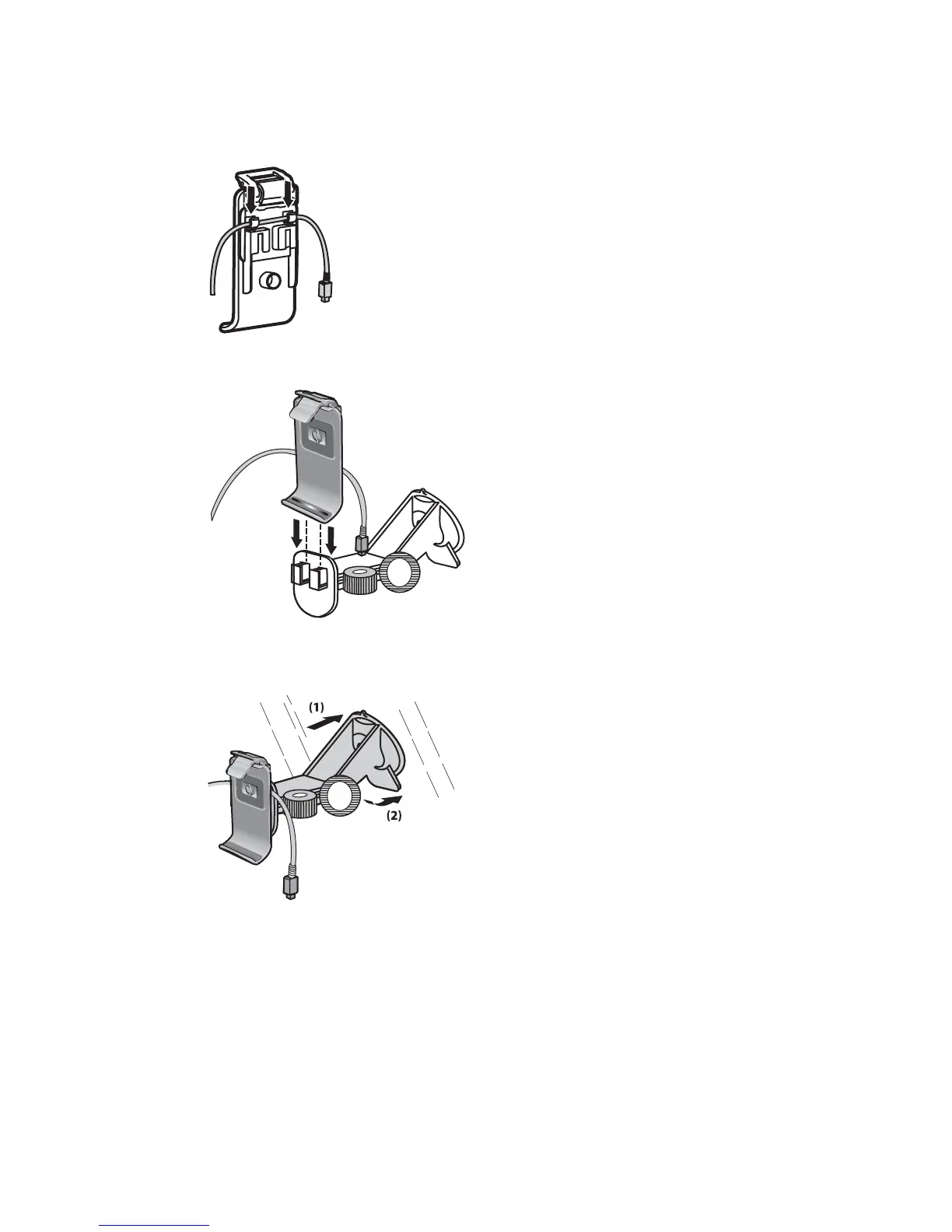 2. Attach the power cable to the clips on the back of the Travel Companion holder. Be sure to leave