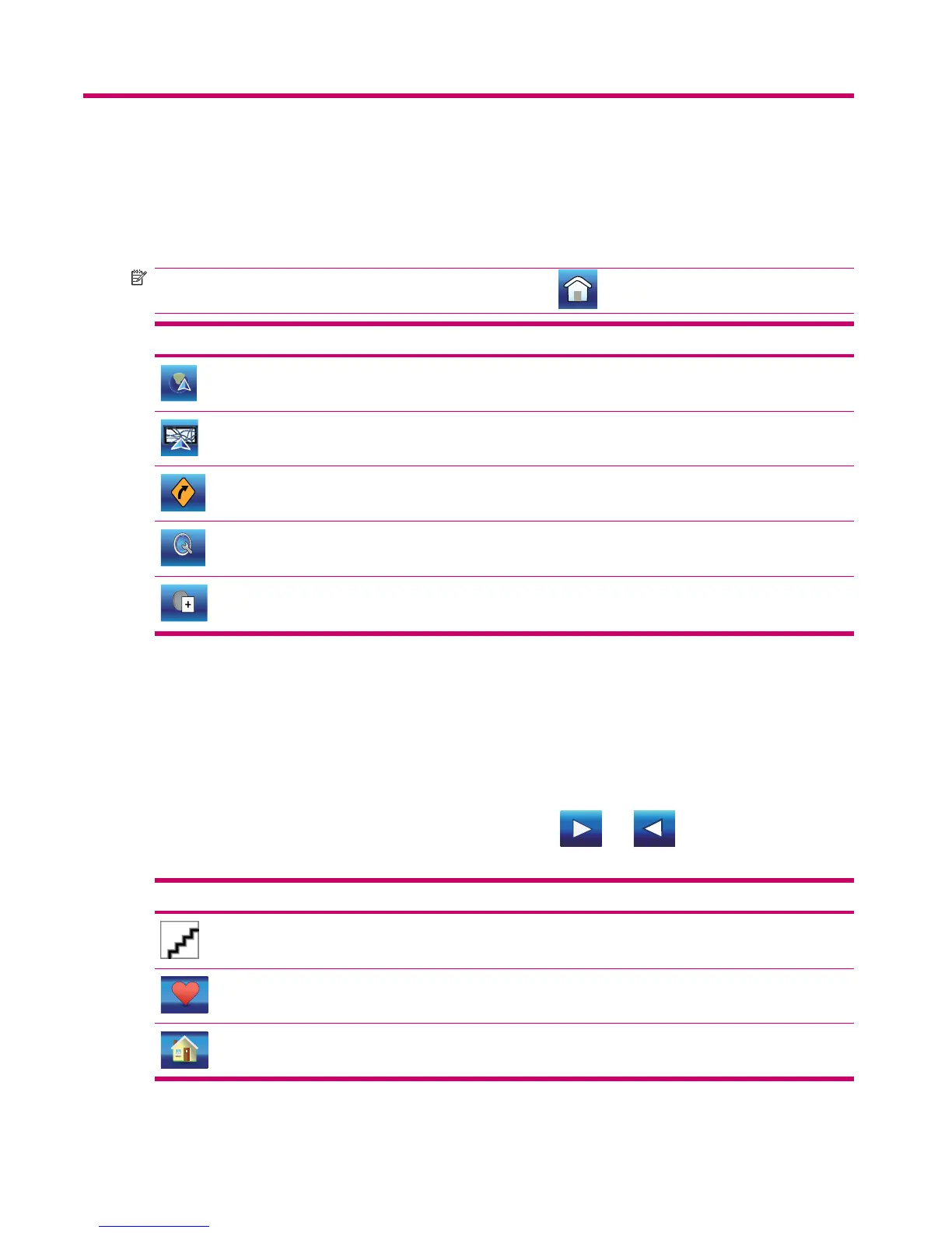 and icons to navigate between