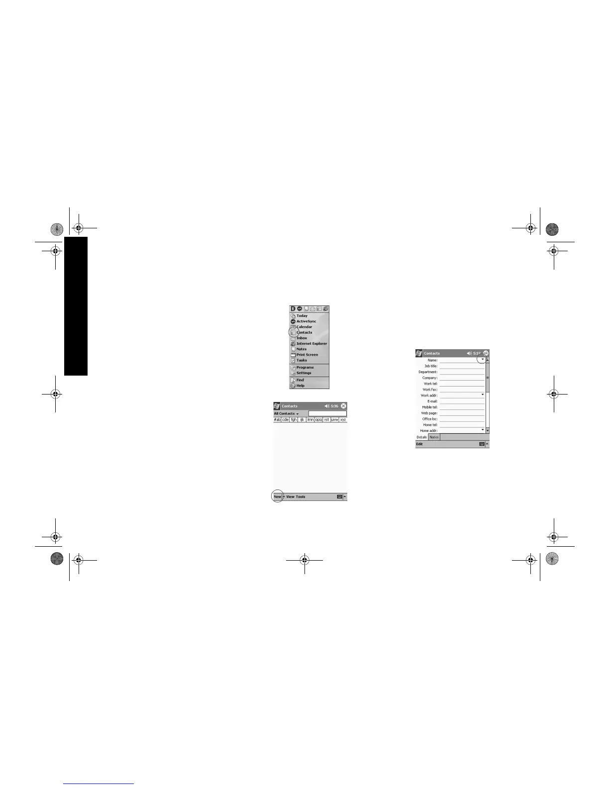 2 Valitse New, jotta voit tallentaa uuden yhteystiedon.