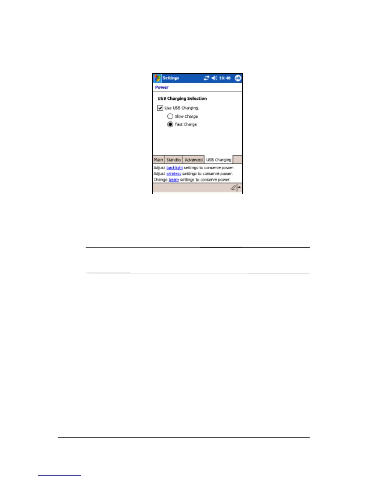 Note: The Pocket PC charges slower when using an USB cable