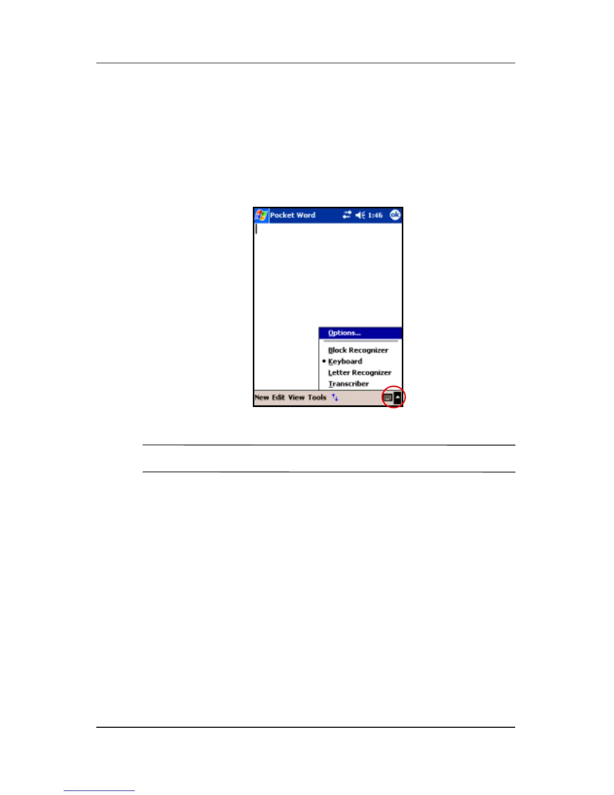 1. From any application, tap the up arrow next to the Input