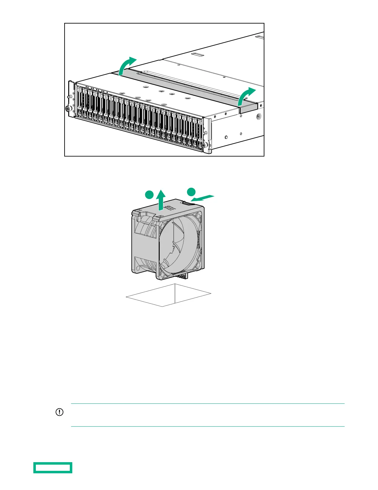 2. Squeeze together the locking tabs on each side of the defective fan module, and then lift the fan module up and out of