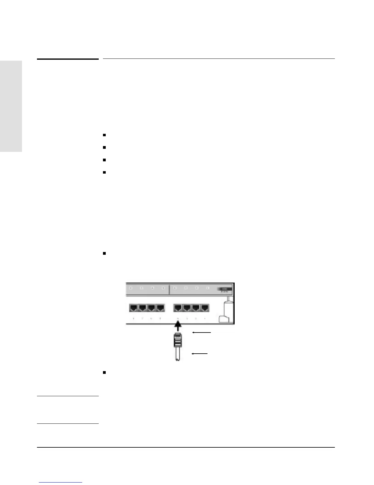 To disconnect an RJ-45 plug, press the small tab on the plug and pull the