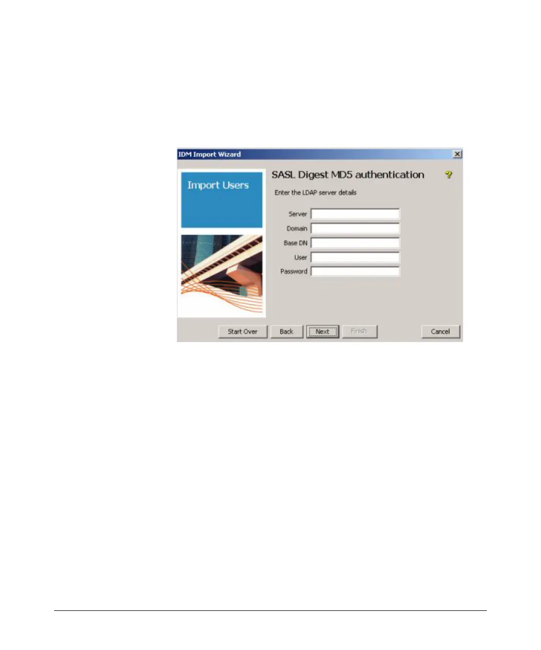 The SASL Digest MD5 authentication window is used to define the LDAP data