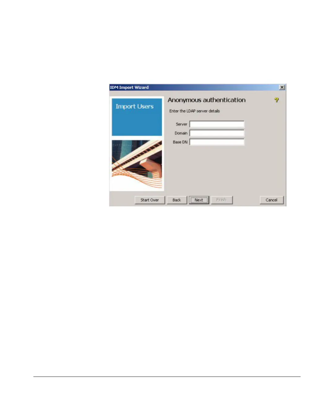 3. Optionally, in the Base DN field, type the Distinguished Name. IDM will