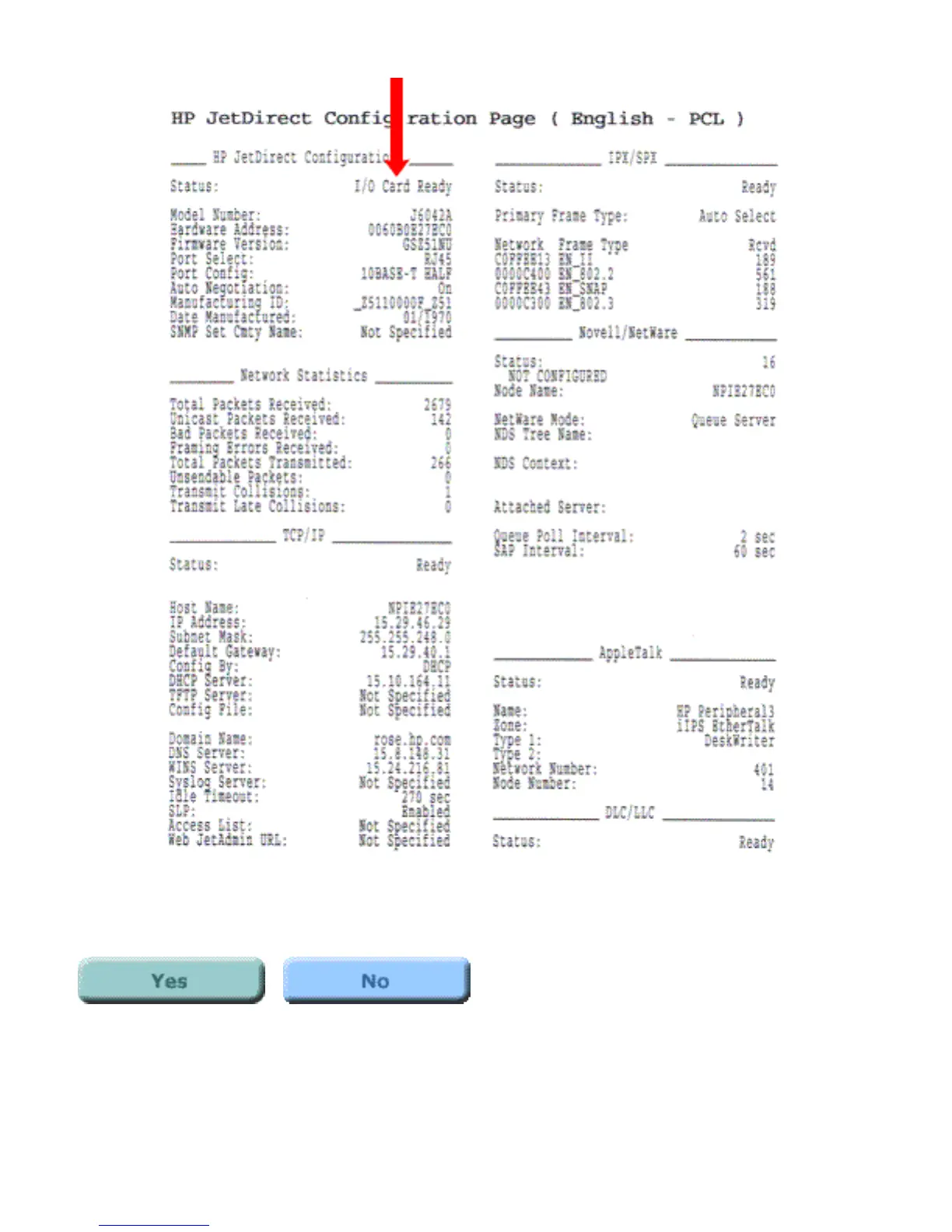 Does the page indicate "I/O Card Ready"?