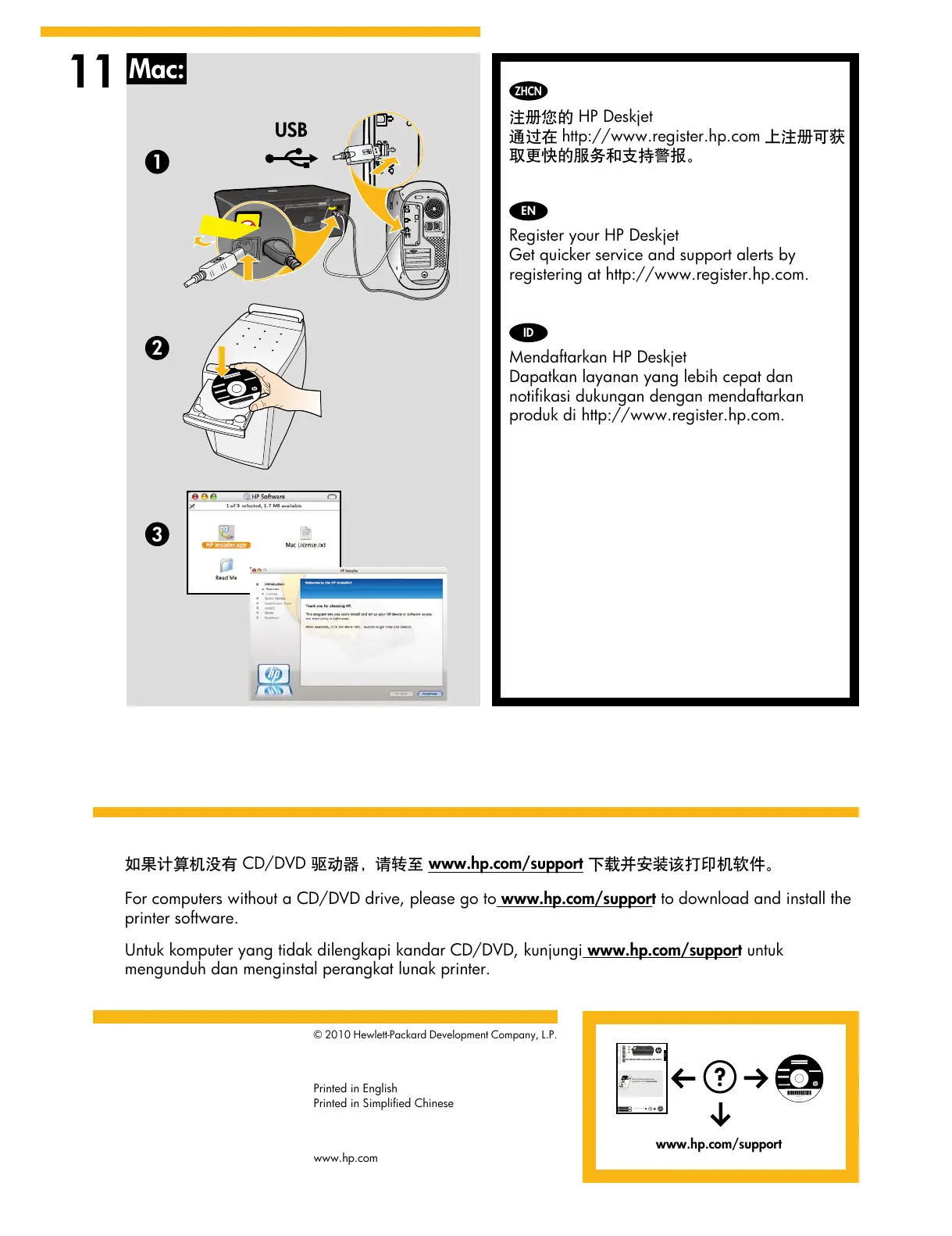 如果计算机没有 CD/DVD 驱动器,请转至 www.hp.com/support 下载并安装该打印机软件。
