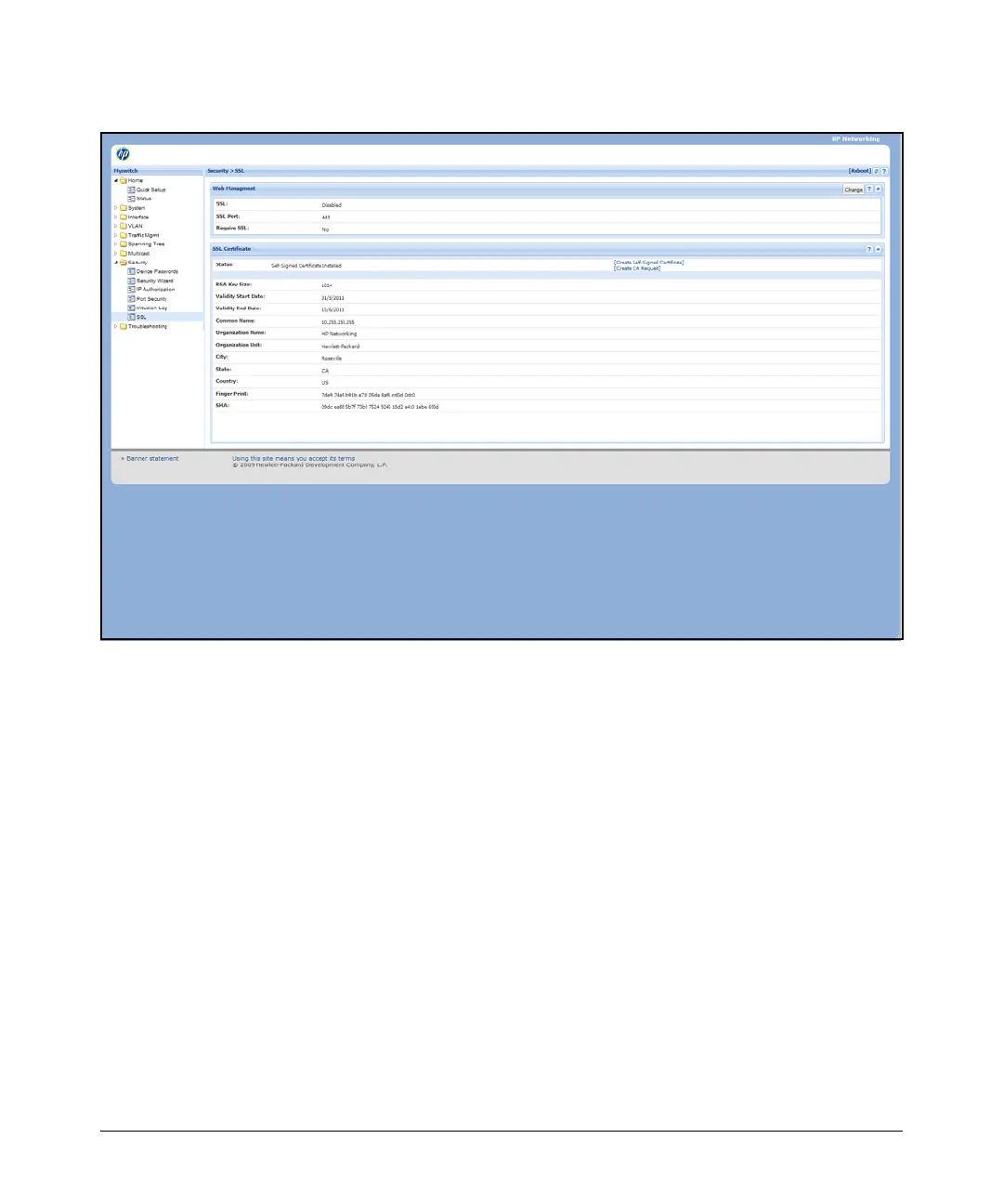 Figure 9-4. Self-Signed Certificate generation via SSL WebAgent Screen