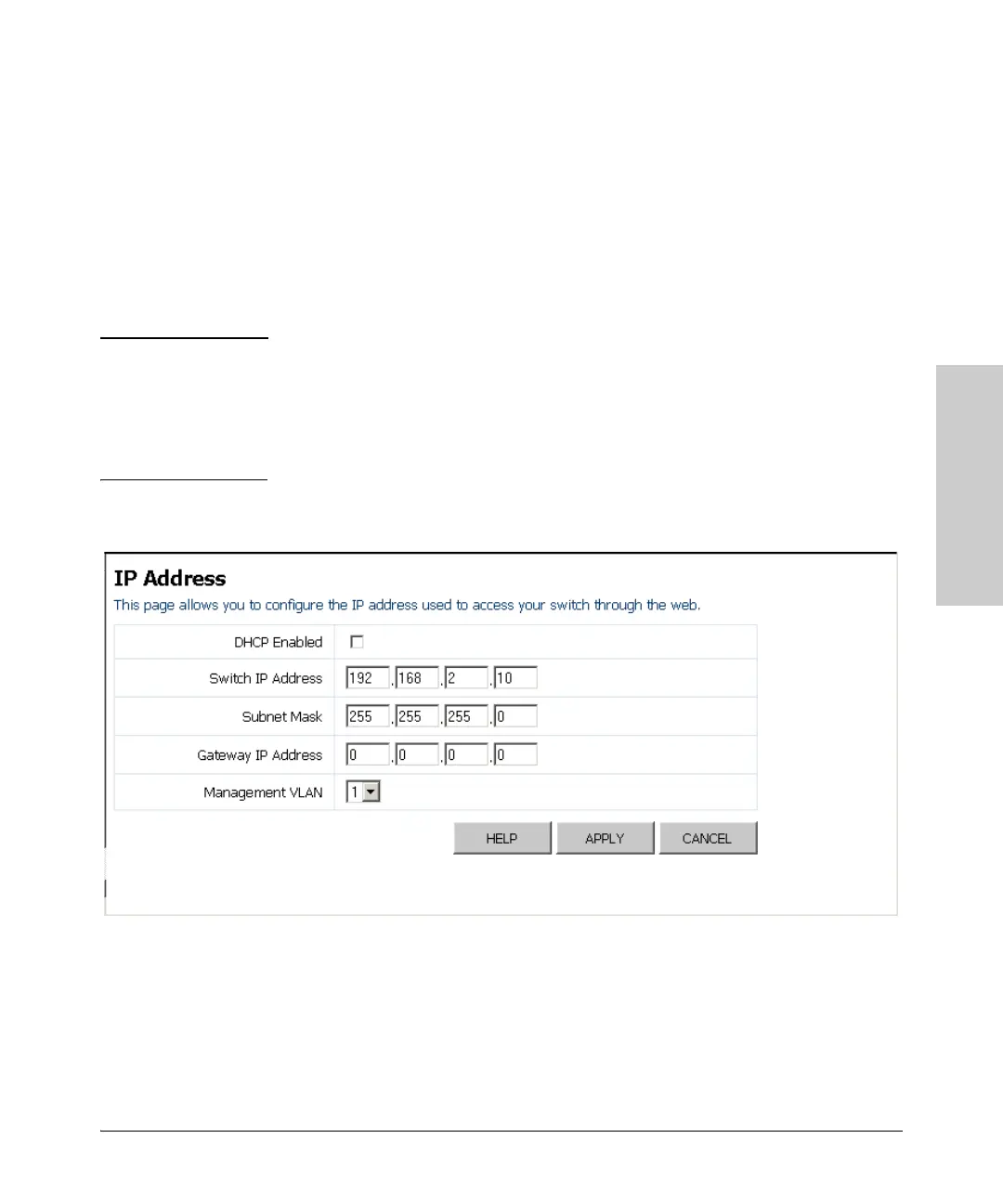 Note Be sure to keep a record of the switch’s IP address. If you cannot remember