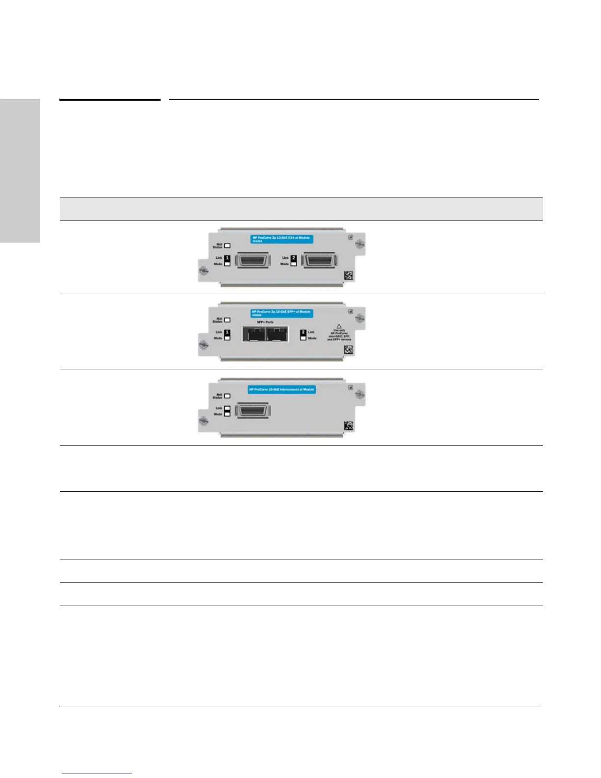 These modules require switch software version W.14.01 or later to be installed in the switch.