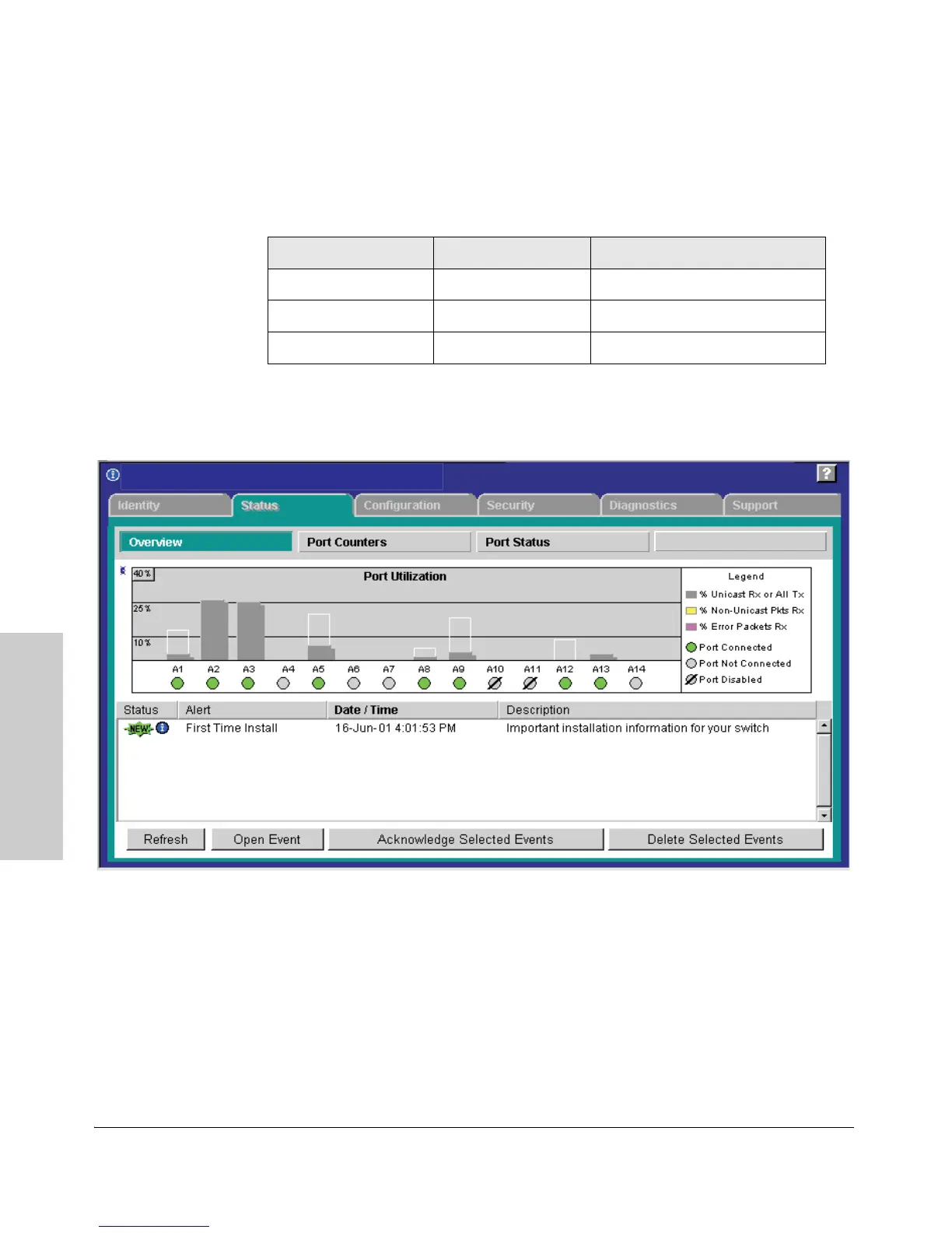 the switch through the browser interface are listed in the following table: