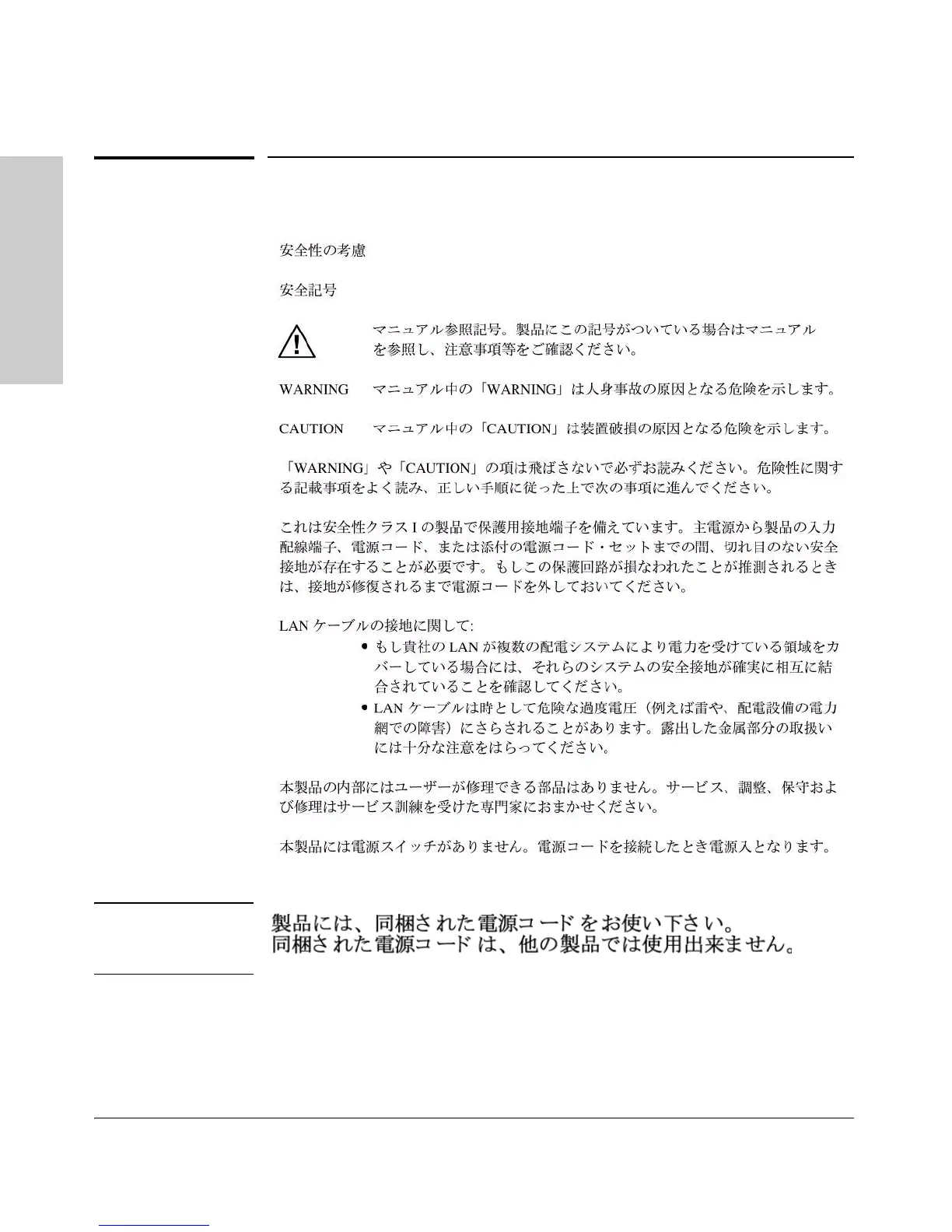HP J9146A - ProCurve Switch 2910al-24G-PoE - Safety Information (Japan