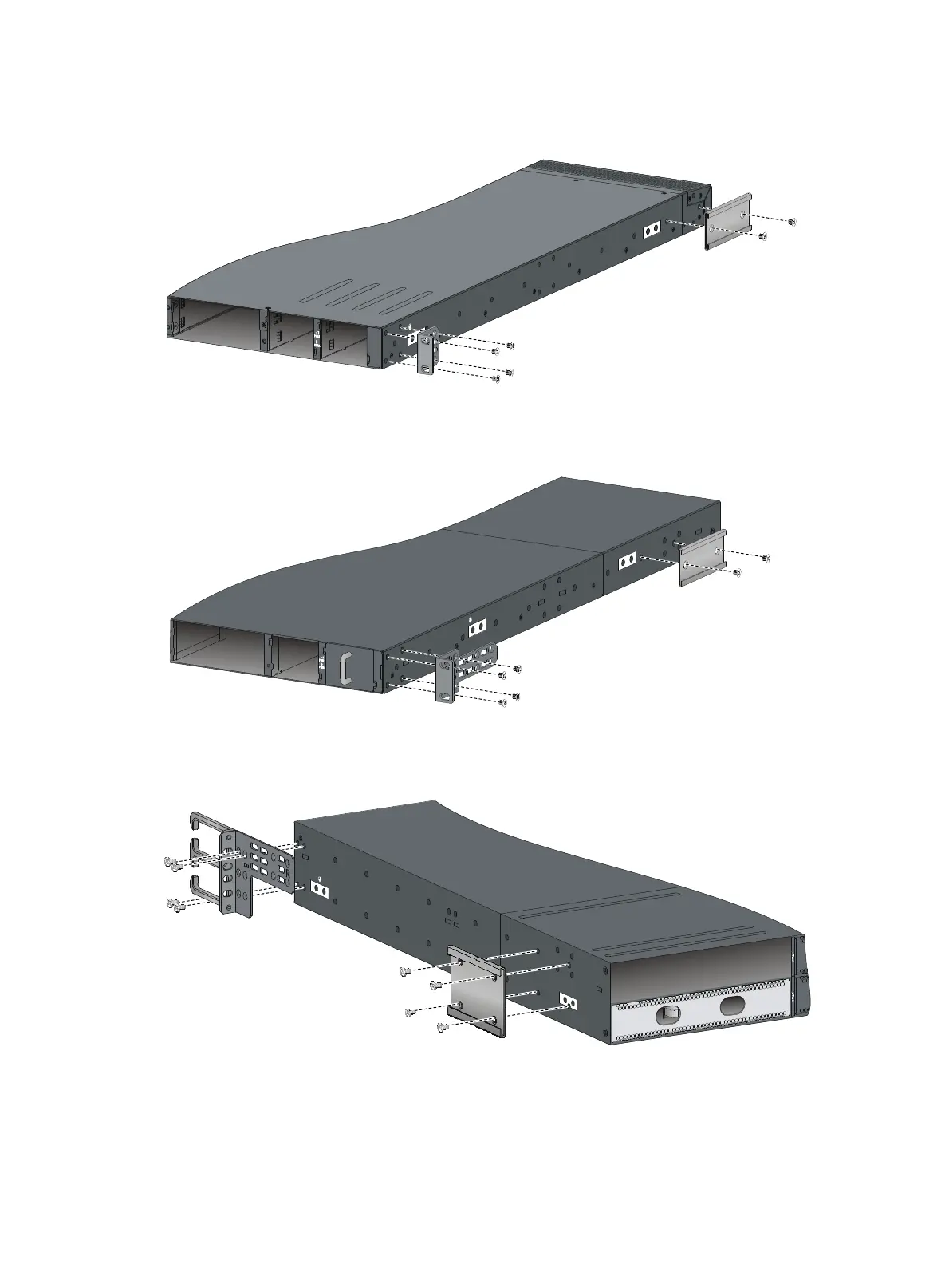 Figure 12 Attaching the mounting brackets and chassis rails to the HP 5930-4Slot/HP 5930-4Slot TAA