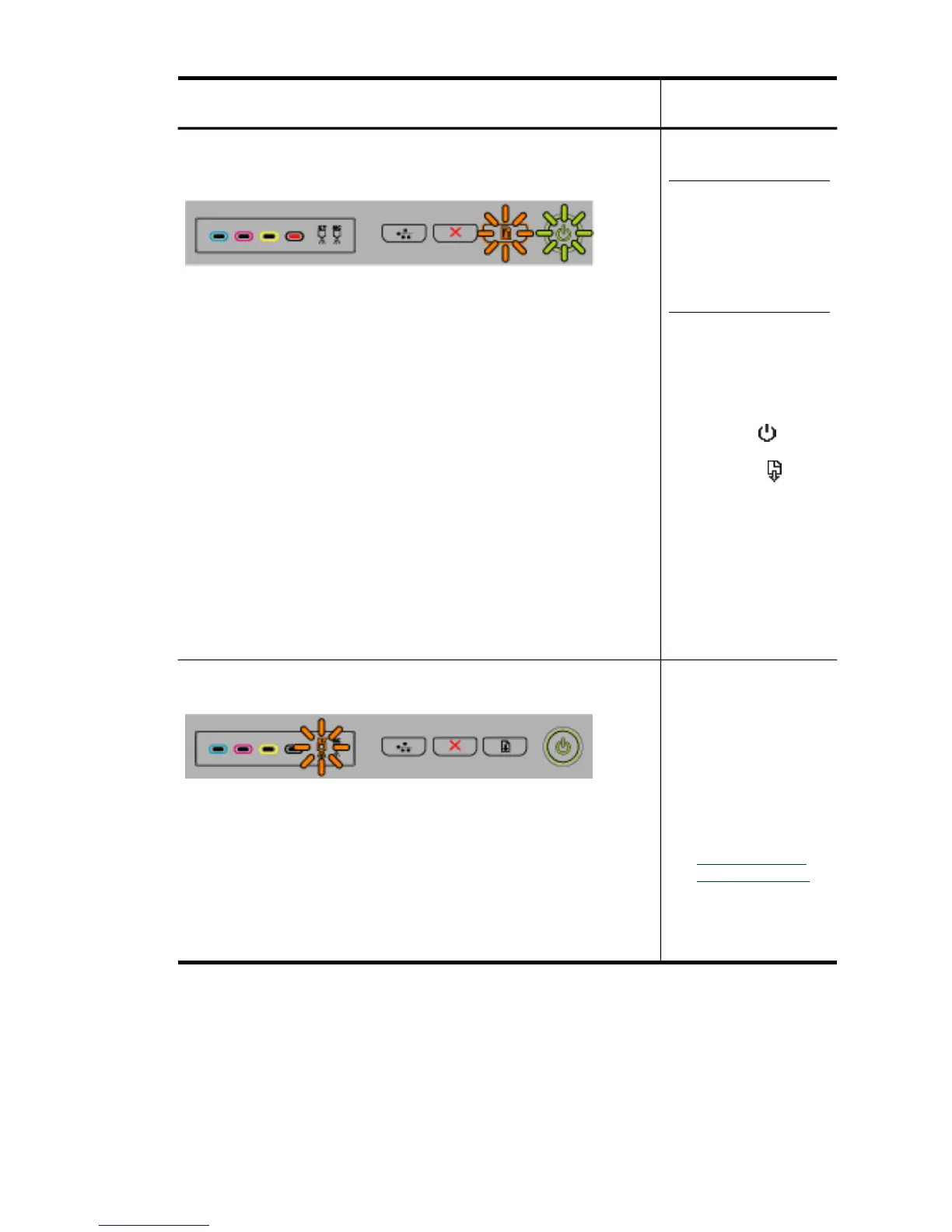 The Power light is on, and one or more of the printhead lights blink. One or more of the