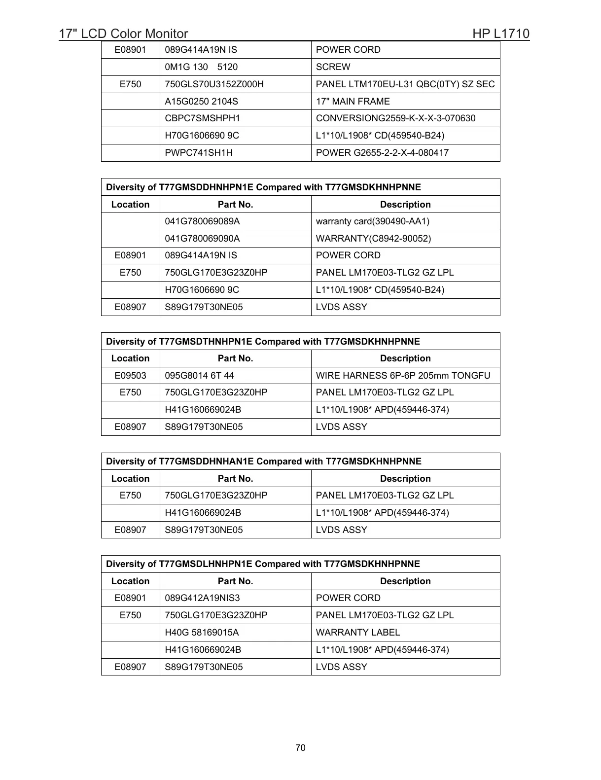 E750 750GLS70U3152Z000H PANEL LTM170EU-L31 QBC(0TY) SZ SEC