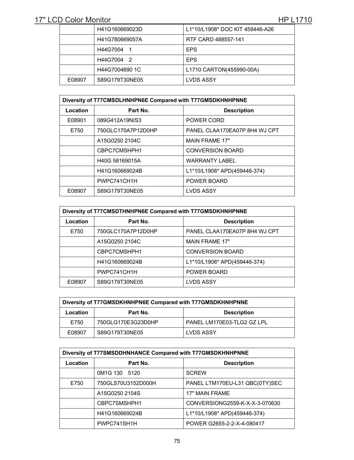 E750 750GLS70U3152D000H PANEL LTM170EU-L31 QBC(0TY)SEC