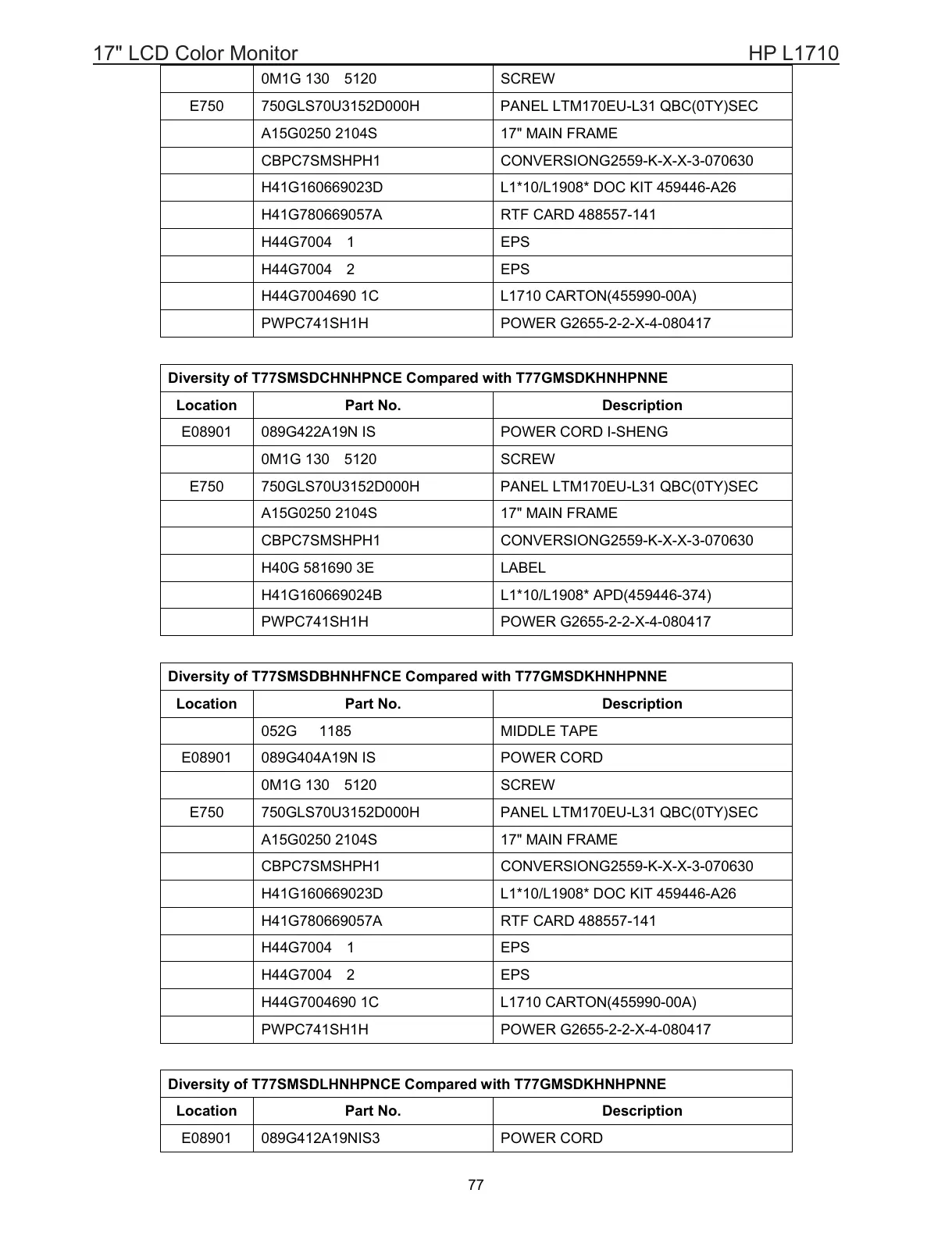E750 750GLS70U3152D000H PANEL LTM170EU-L31 QBC(0TY)SEC