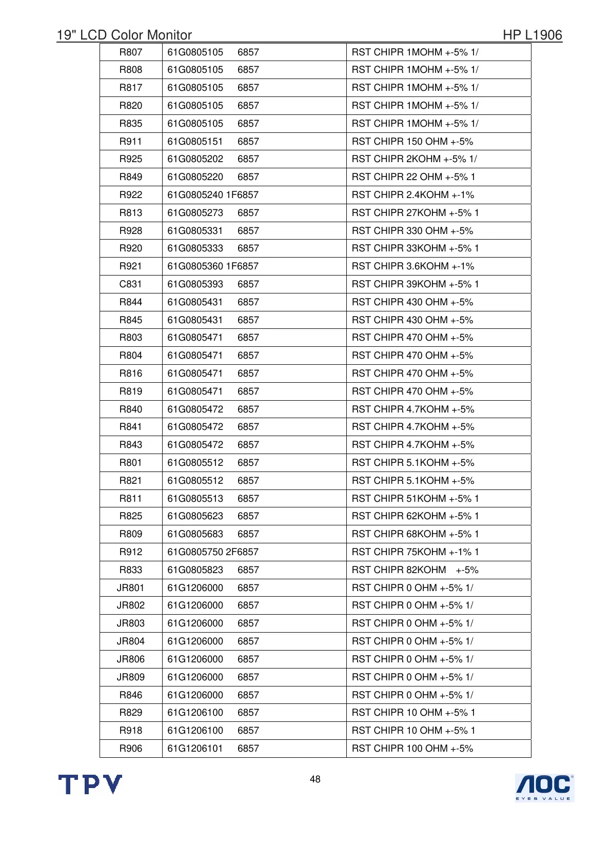 R821 61G0805512 6857 RST CHIPR 5.1KOHM +-5%