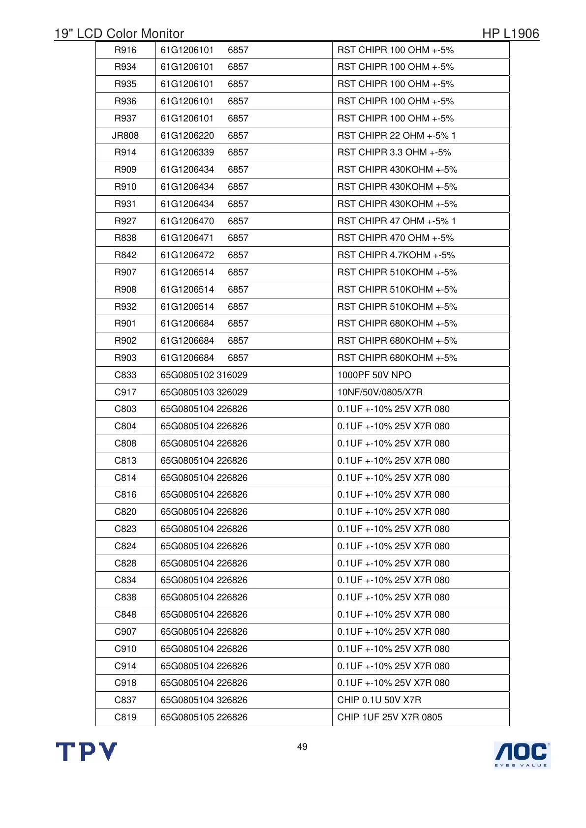 R934 61G1206101 6857 RST CHIPR 100 OHM +-5%