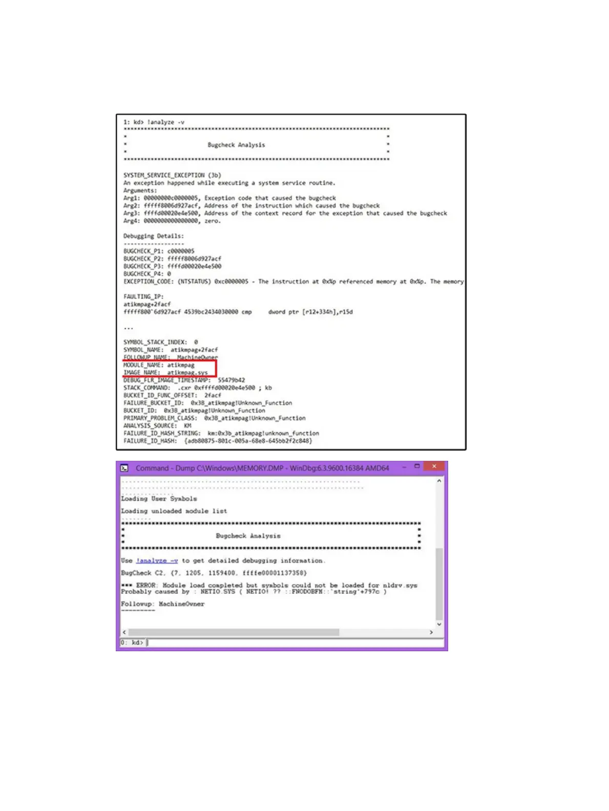 7. Analyze the le. In the following memory dump sample, look for Bug Check 0x3B. The ATIKMAG driver