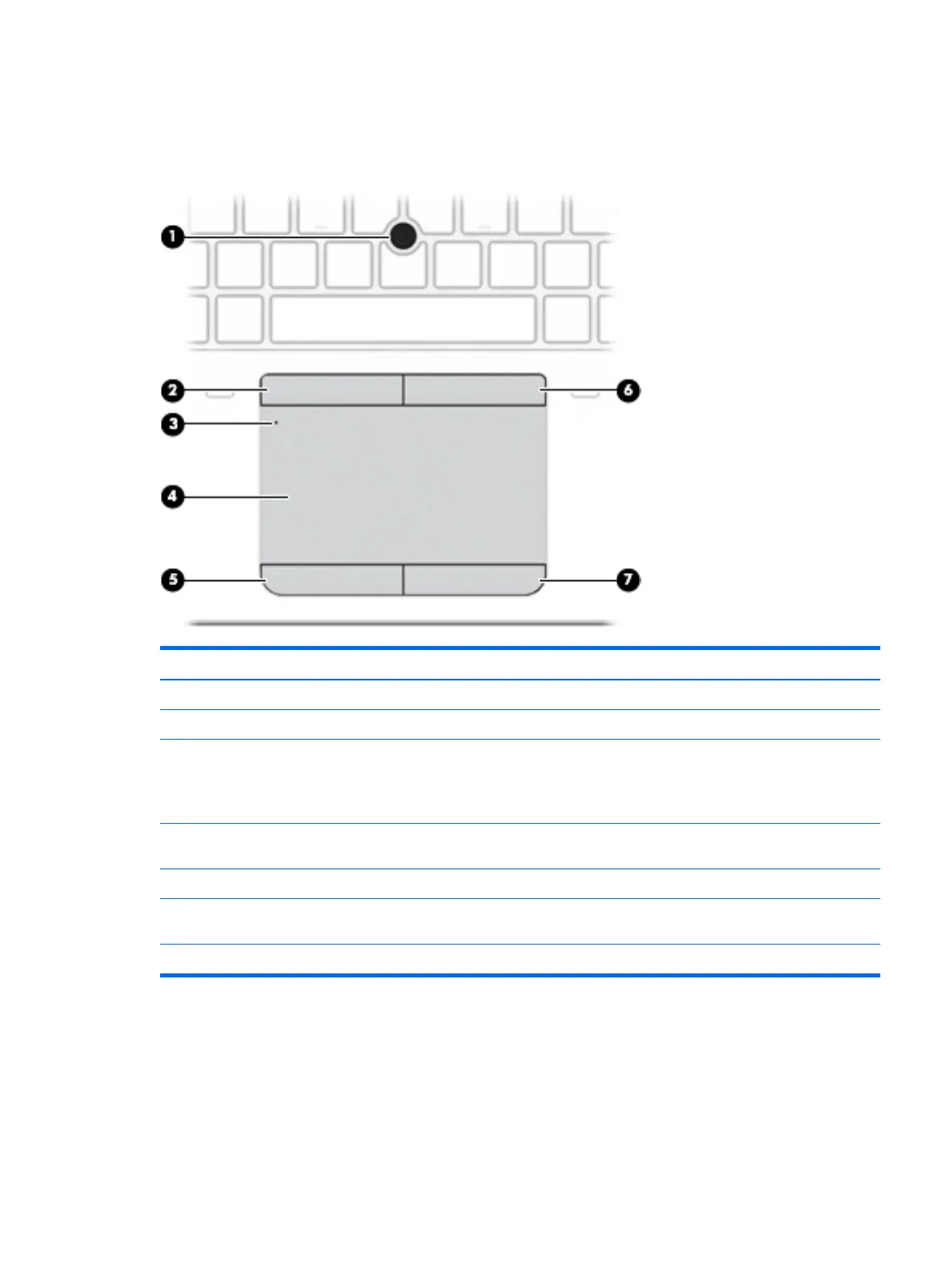 (7) Right TouchPad button Functions like the right button on an external mouse.