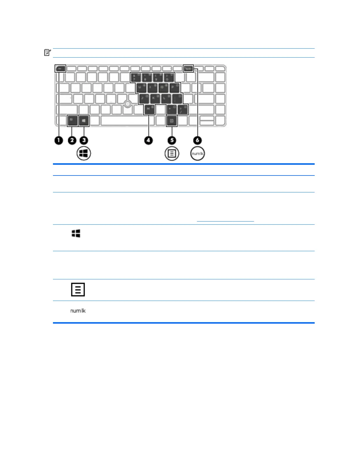 (6) num lock key Turns the embedded numeric keypad on and o.