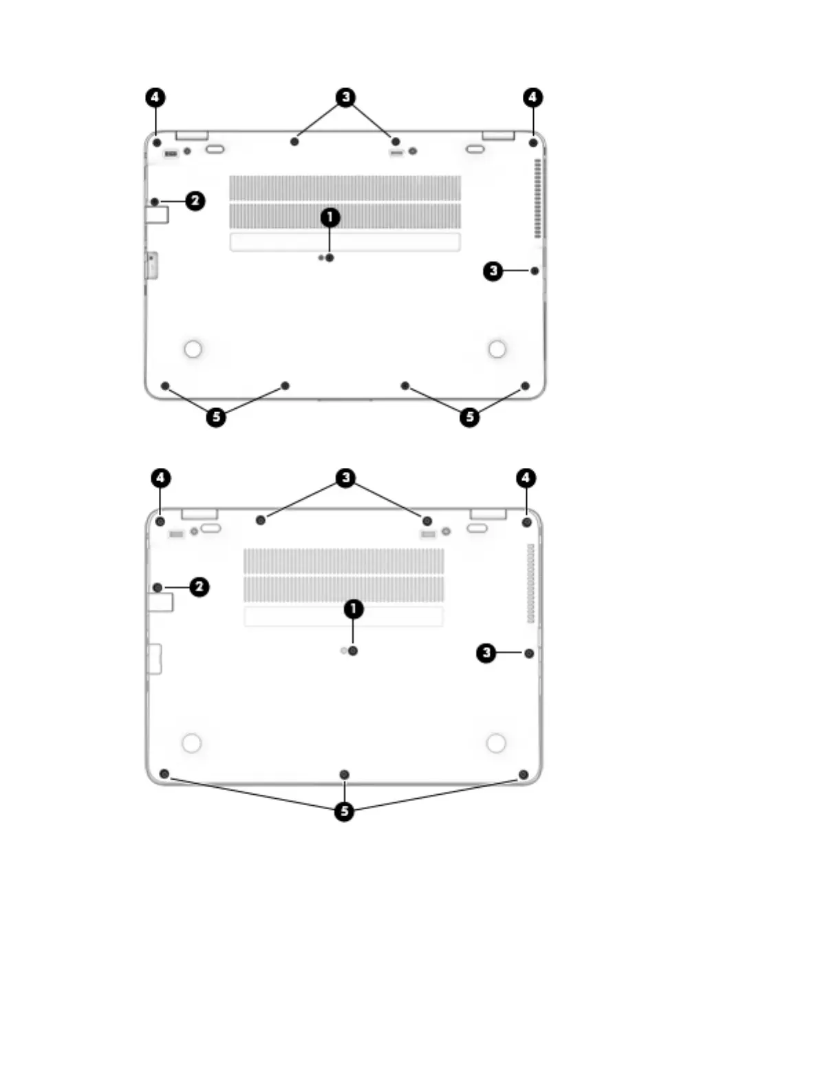 The rubber-plug locations for 14” computers are as follows.