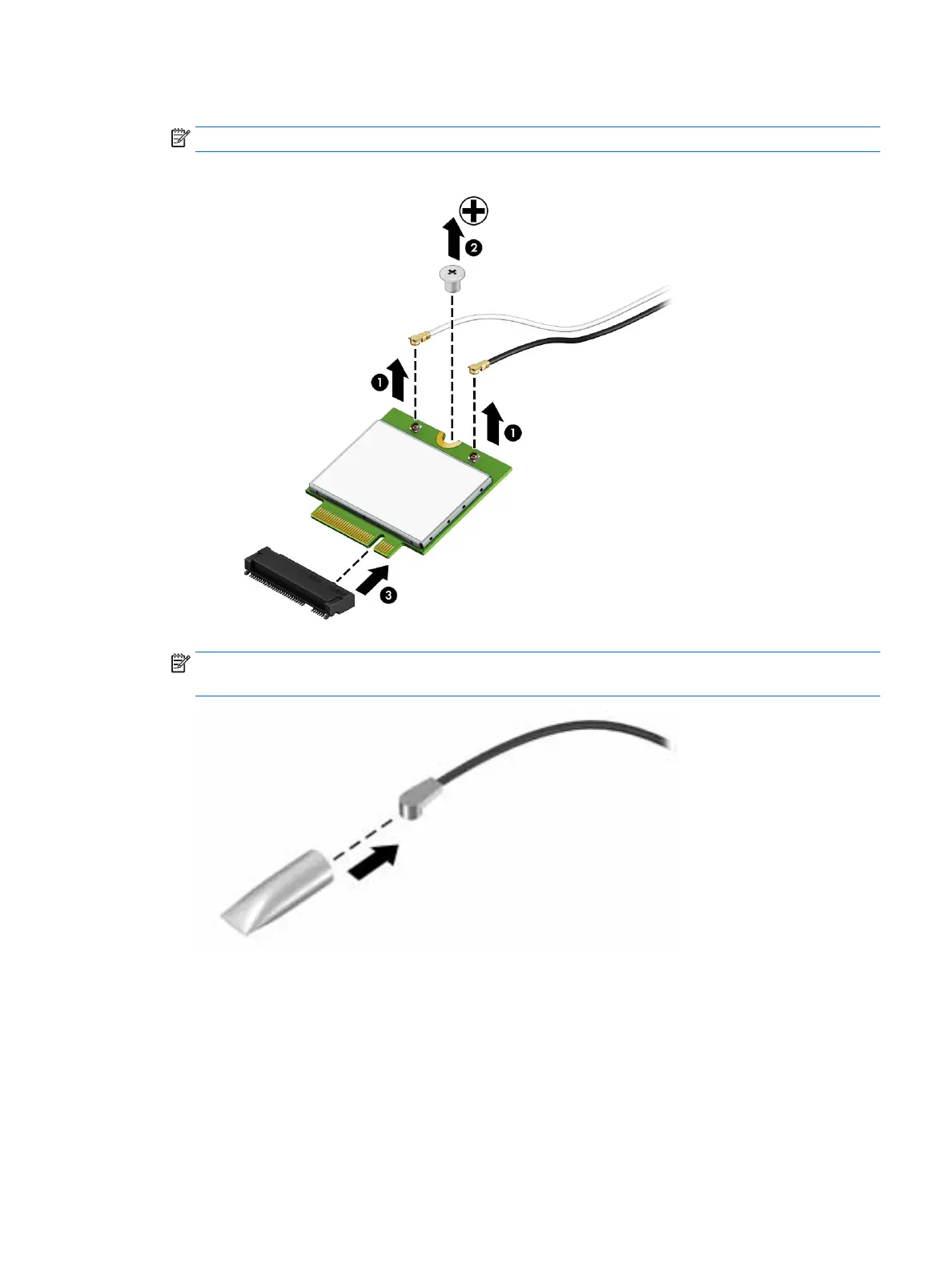 NOTE: If the WLAN antennas are not connected to the terminals on the WLAN module, the protective
