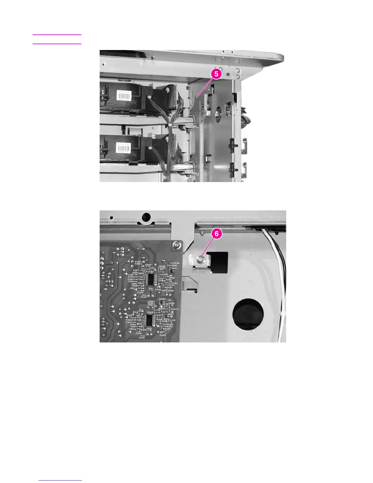 17. On the right side of the printer, remove the screw shown in callout 6.