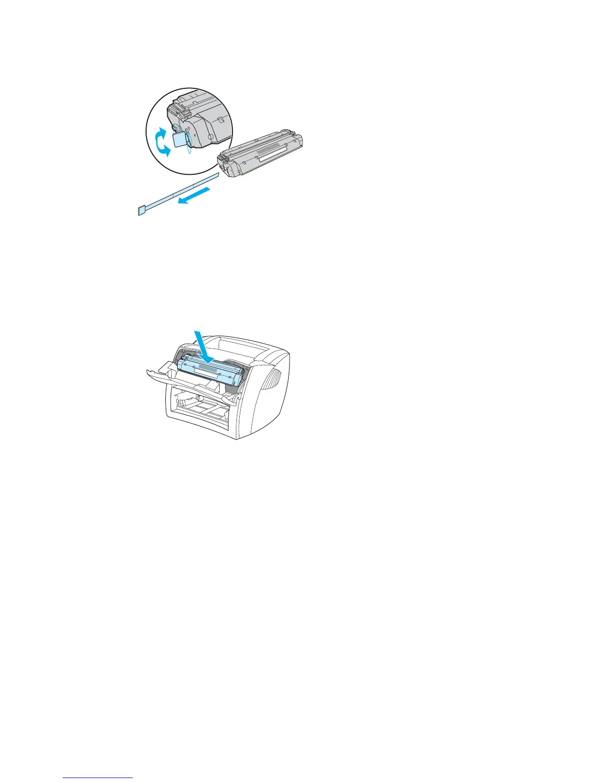 Remove the print cartridge from the plastic bag. To remove the mylar tape, break the tab on the