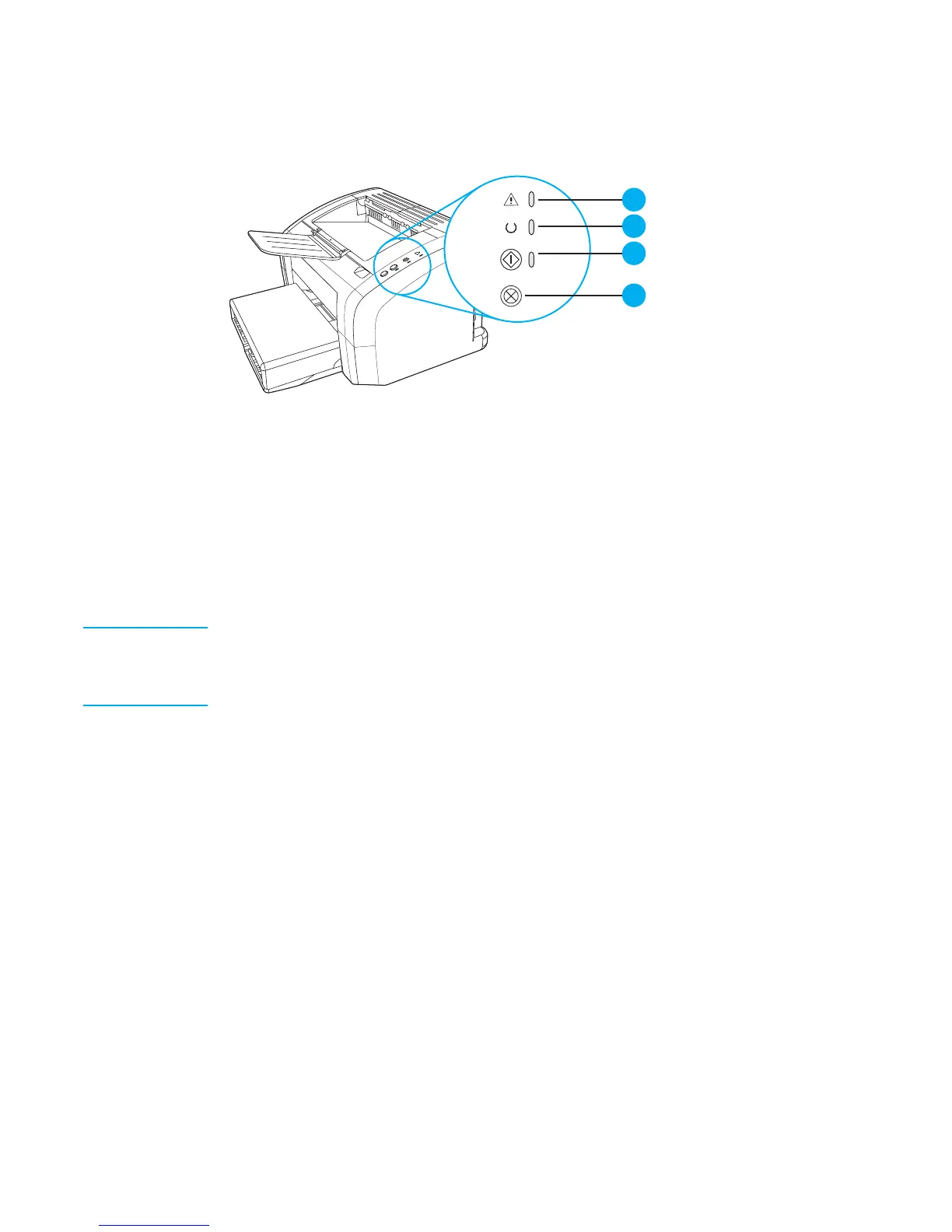 3 Go button and light: To print a demo page, or to continue printing while in manual feed mode, press