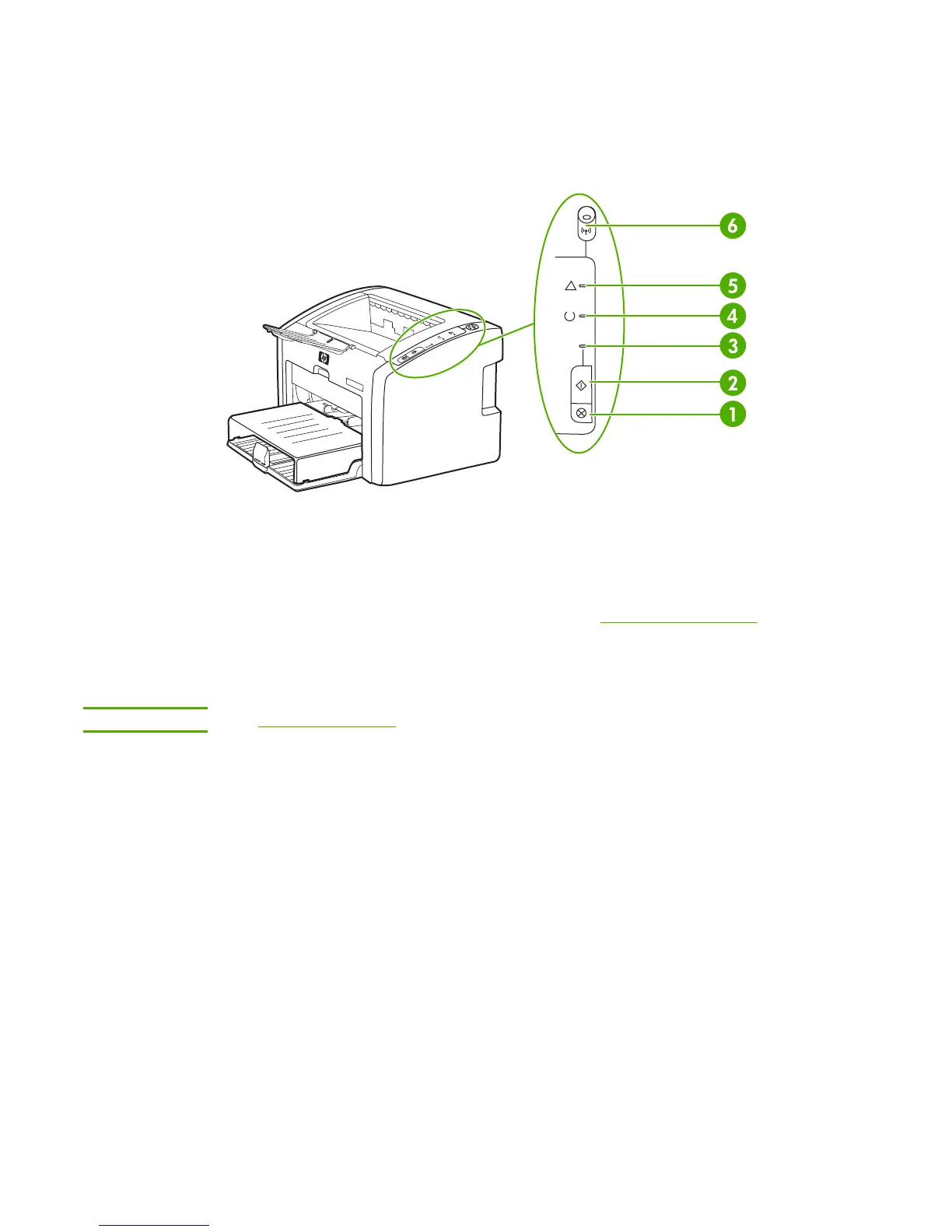 6 Wireless light: (HP LaserJet 1022nw printer only) When the Wireless light is on solid, a wireless